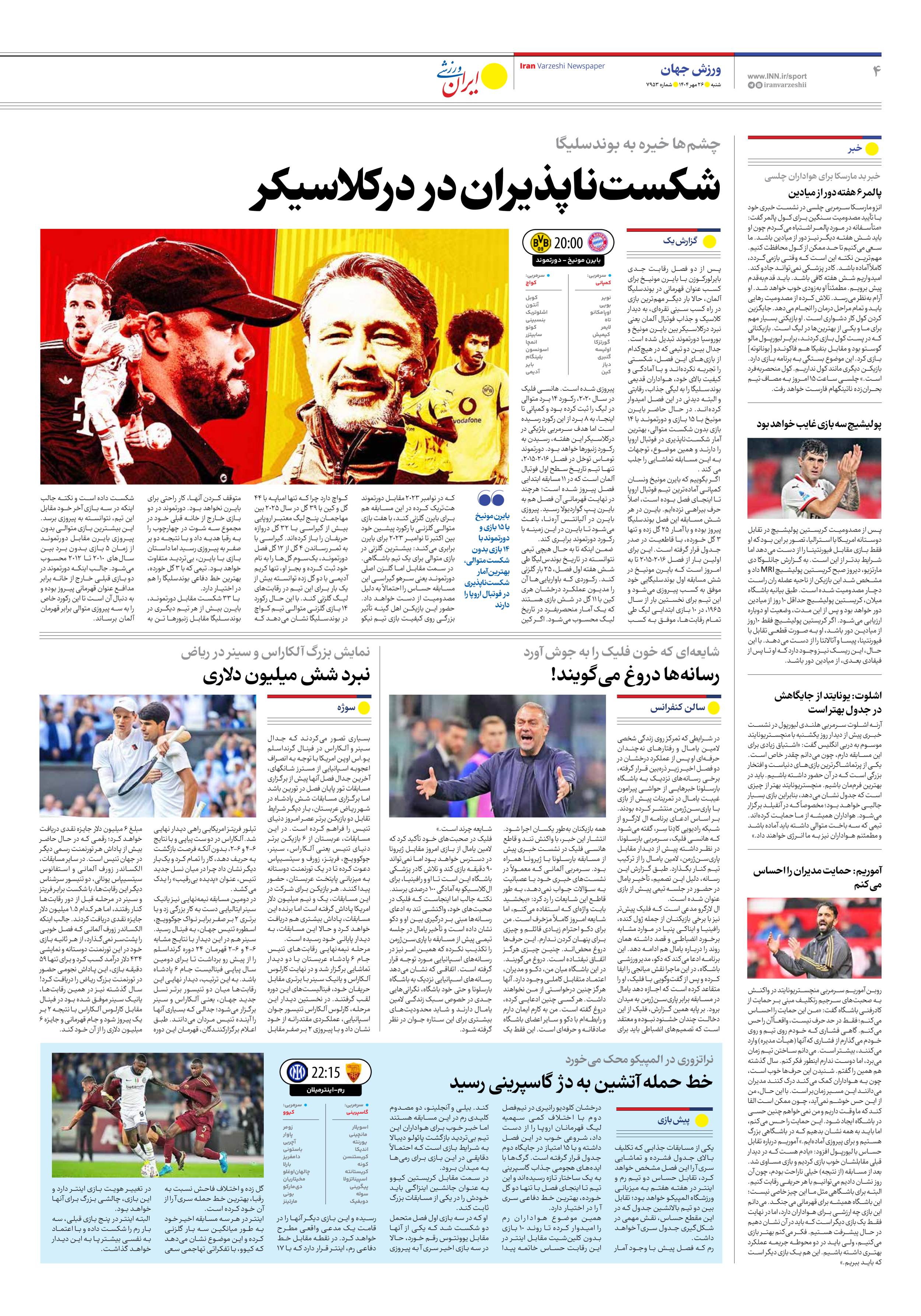 روزنامه ایران ورزشی - شماره هفت هزار و نهصد و پنجاه و سه - ۲۶ مهر ۱۴۰۴ - صفحه ۴