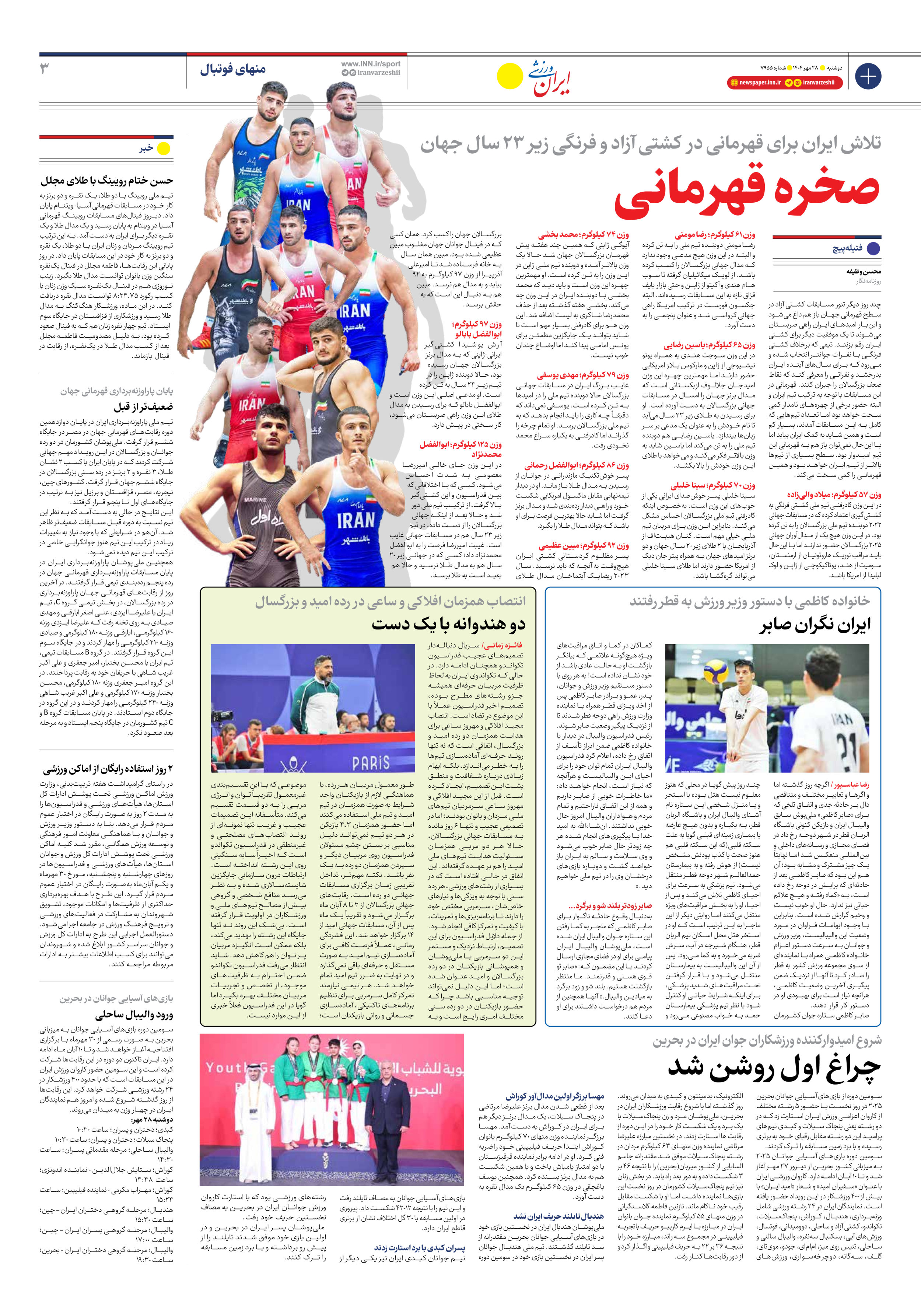 روزنامه ایران ورزشی - شماره هفت هزار و نهصد و پنجاه و پنج - ۲۸ مهر ۱۴۰۴ - صفحه ۳