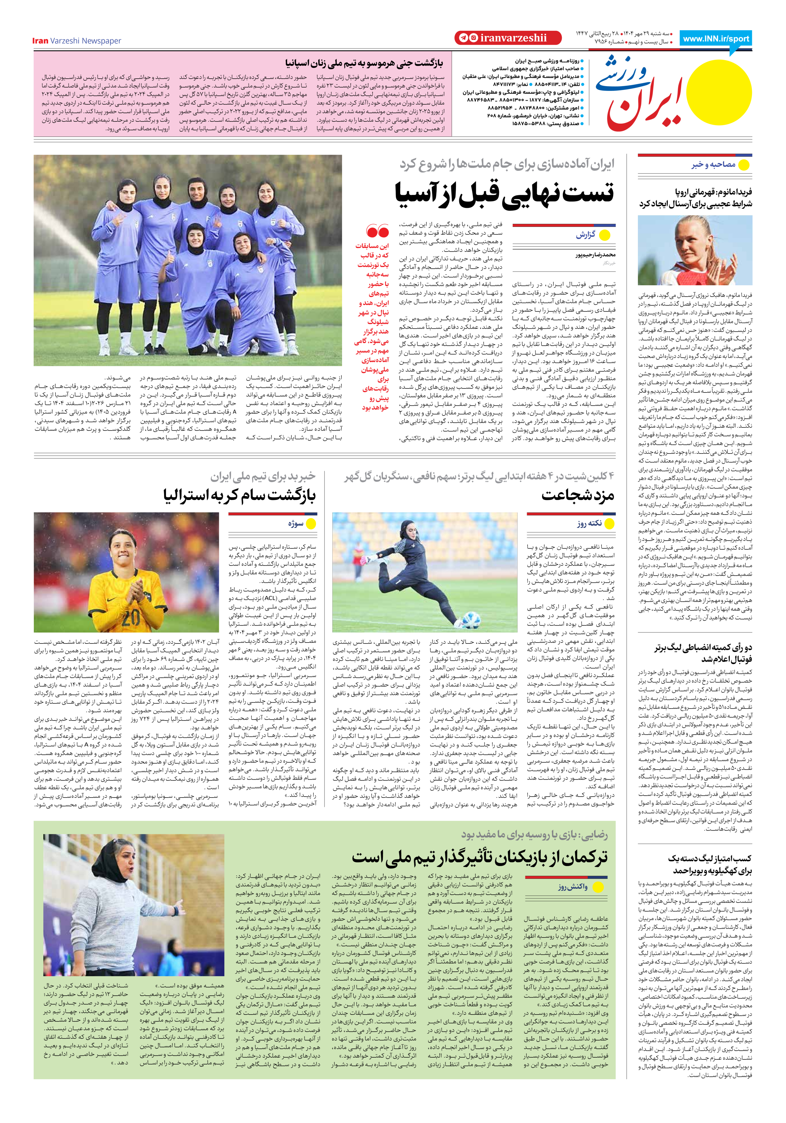 شماره هفت هزار و نهصد و پنجاه و شش - ۲۹ مهر ۱۴۰۴