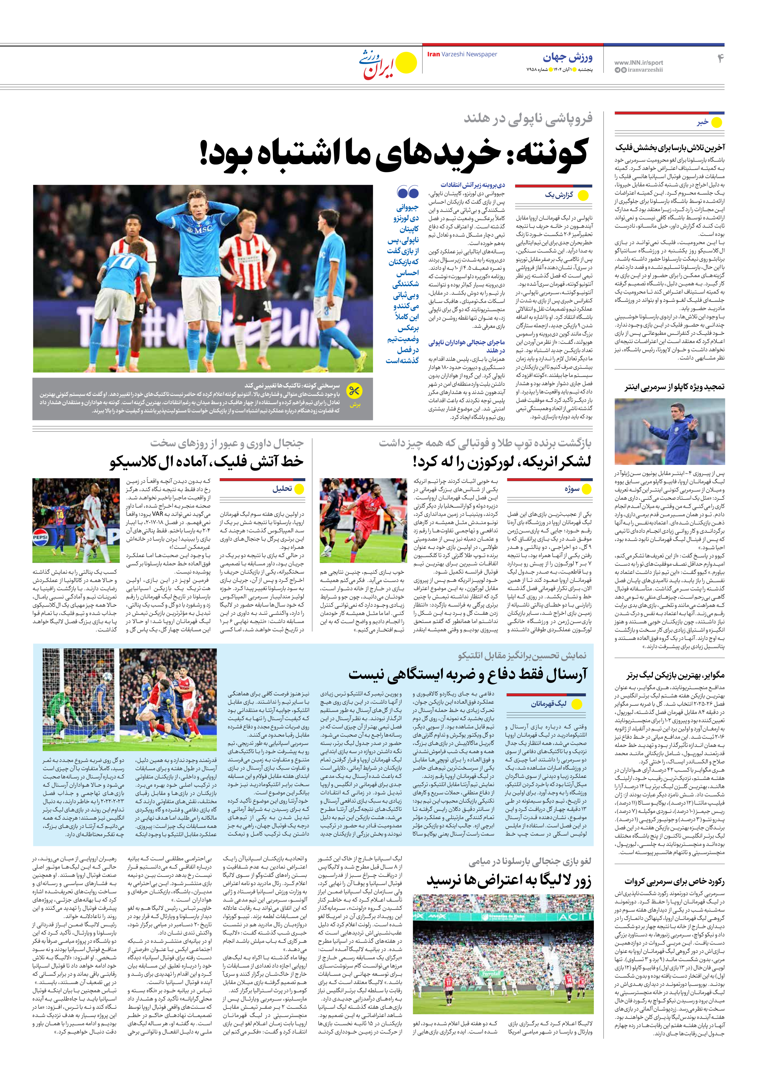 روزنامه ایران ورزشی - شماره هفت هزار و نهصد و پنجاه و هشت - ۰۱ آبان ۱۴۰۴ - صفحه ۴