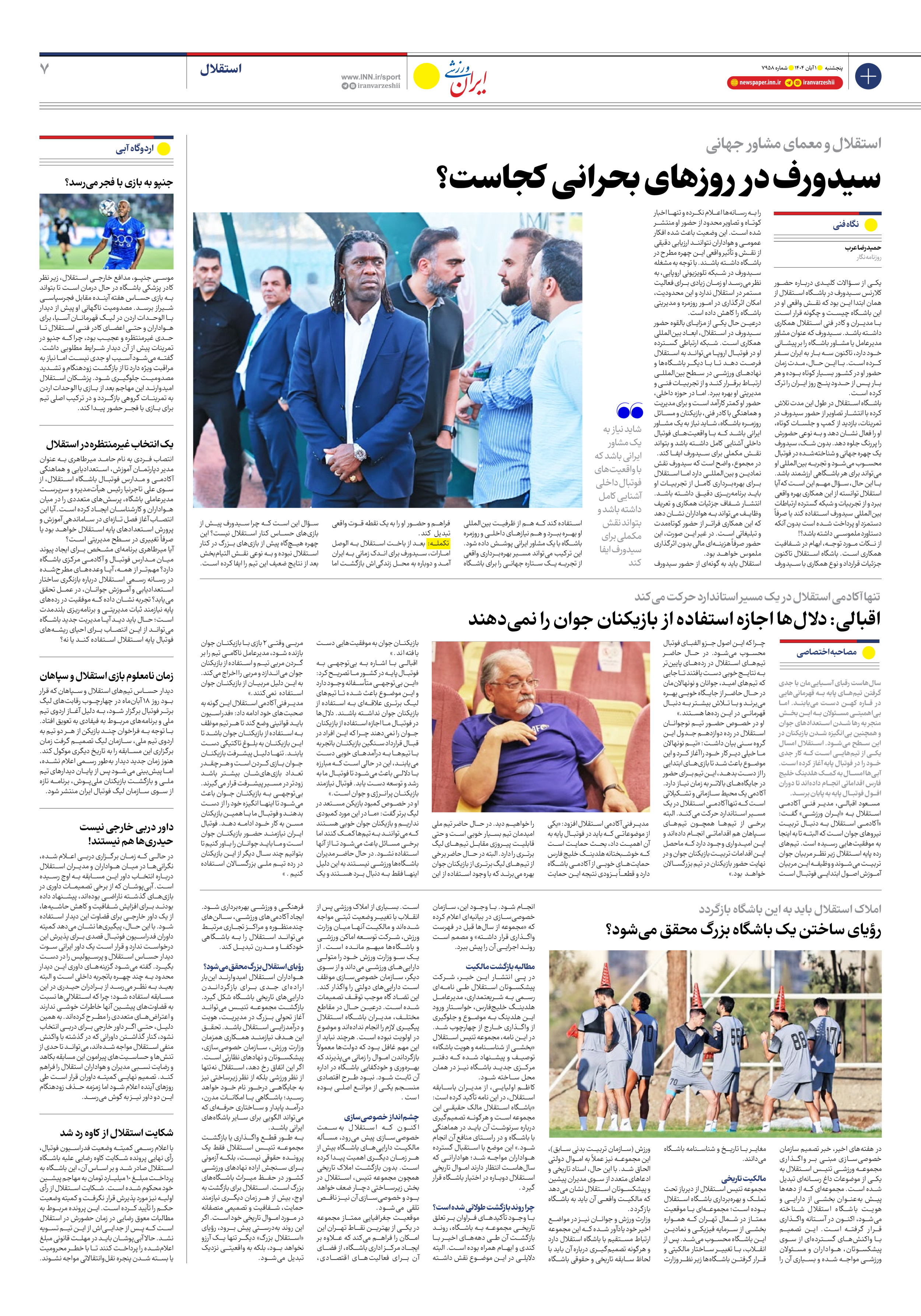 روزنامه ایران ورزشی - شماره هفت هزار و نهصد و پنجاه و هشت - ۰۱ آبان ۱۴۰۴ - صفحه ۷