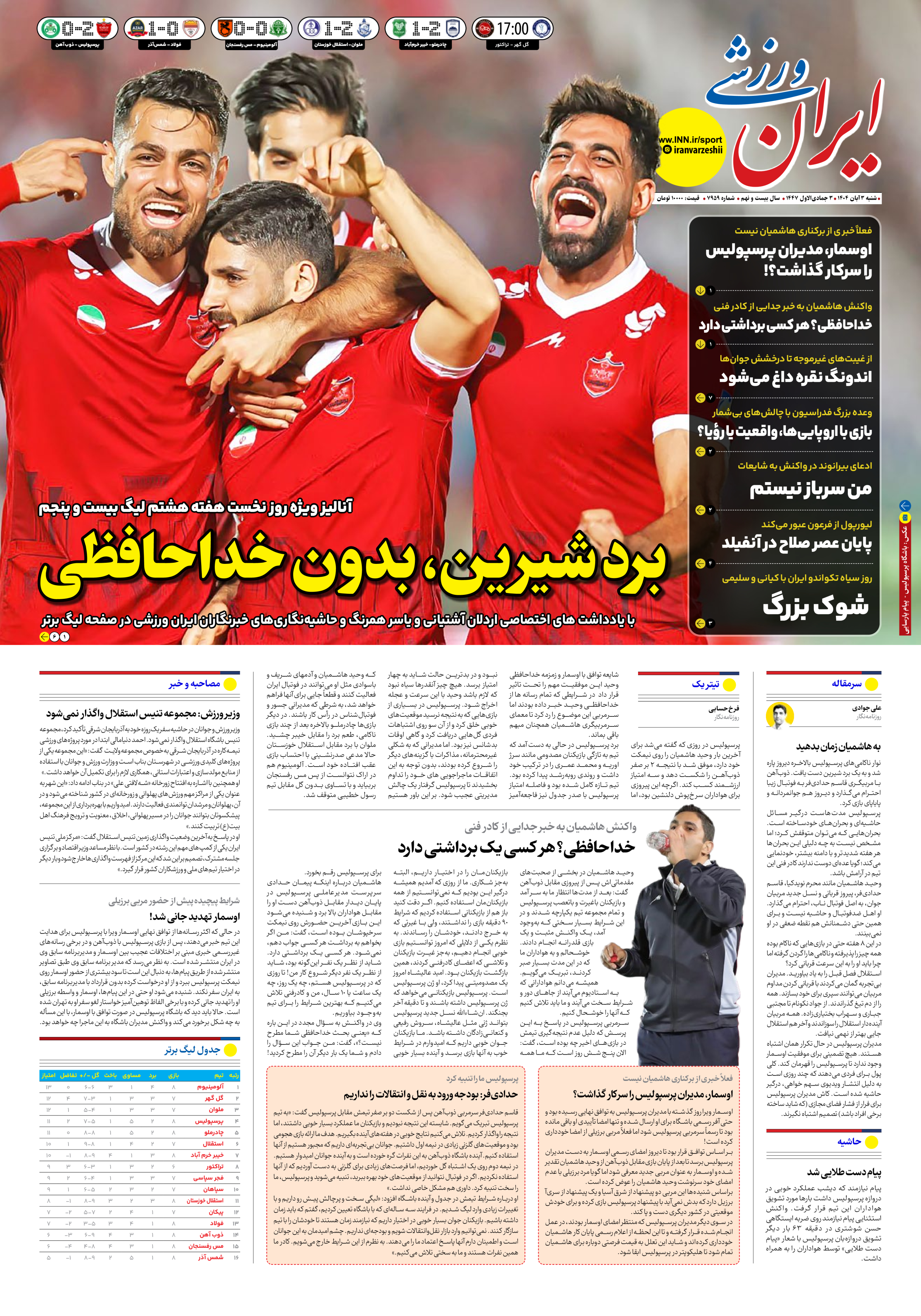 روزنامه ایران ورزشی - شماره هفت هزار و نهصد و پنجاه و نه - ۰۳ آبان ۱۴۰۴
