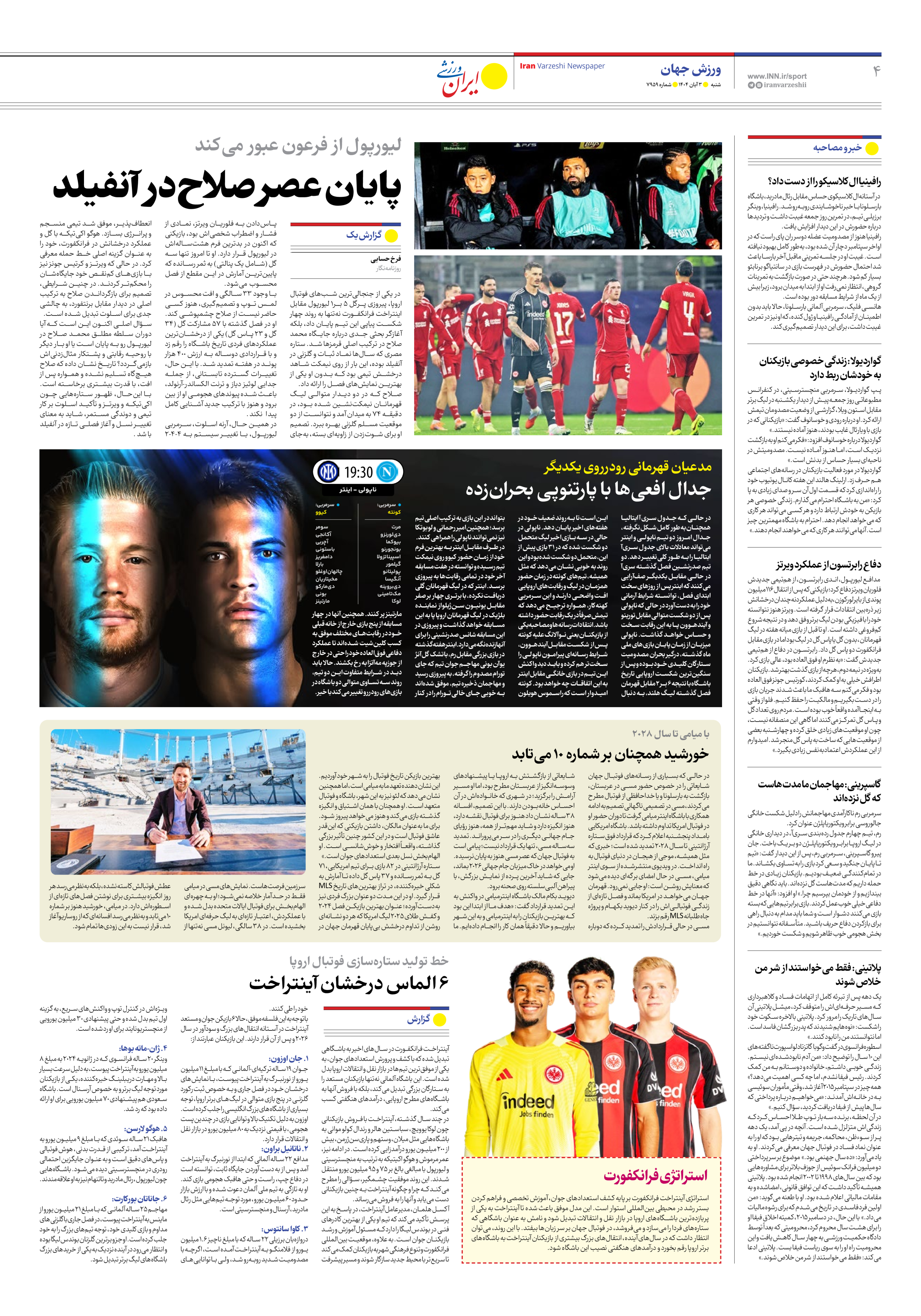 روزنامه ایران ورزشی - شماره هفت هزار و نهصد و پنجاه و نه - ۰۳ آبان ۱۴۰۴ - صفحه ۴