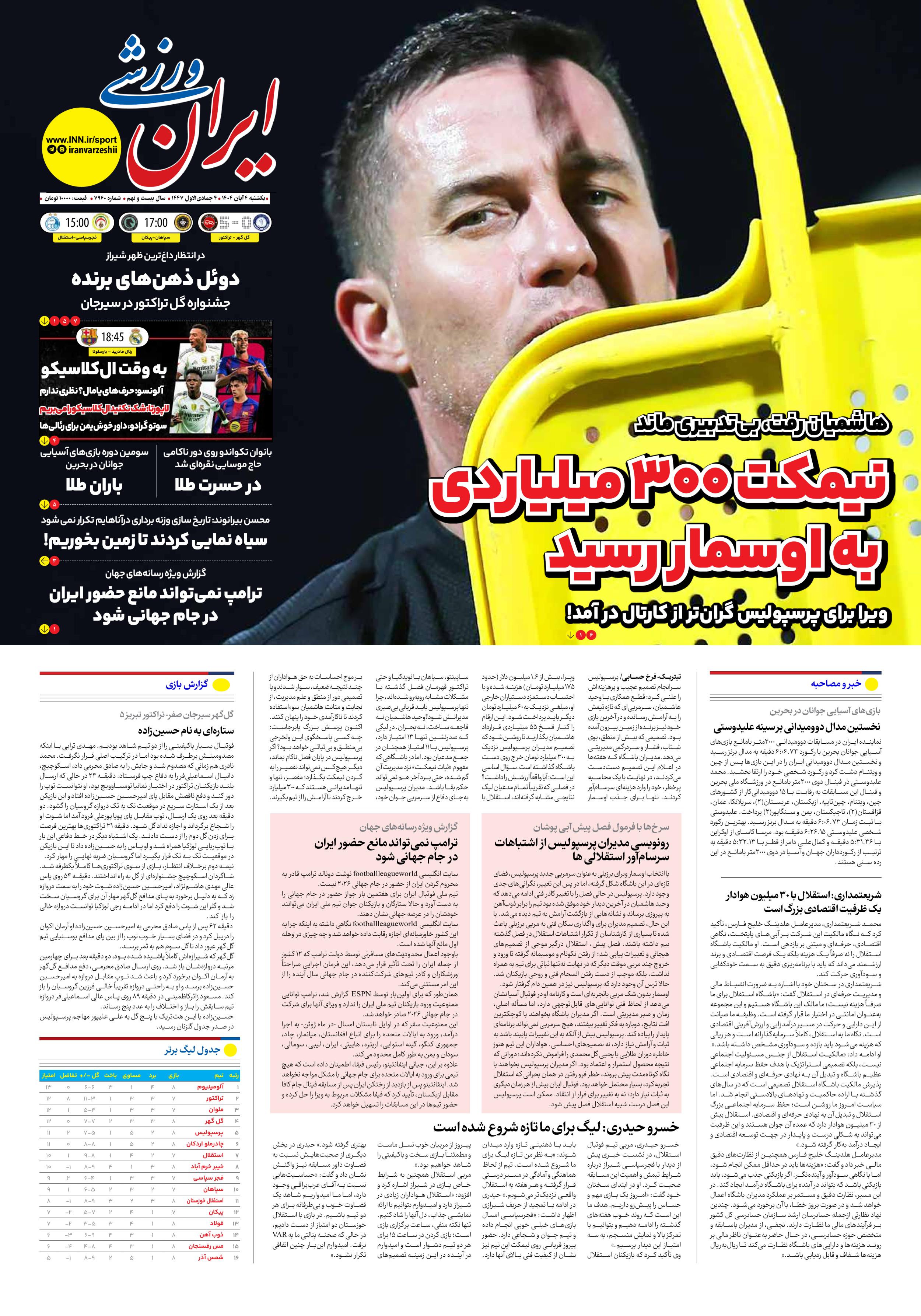 شماره هفت هزار و نهصد و شصت - ۰۴ آبان ۱۴۰۴