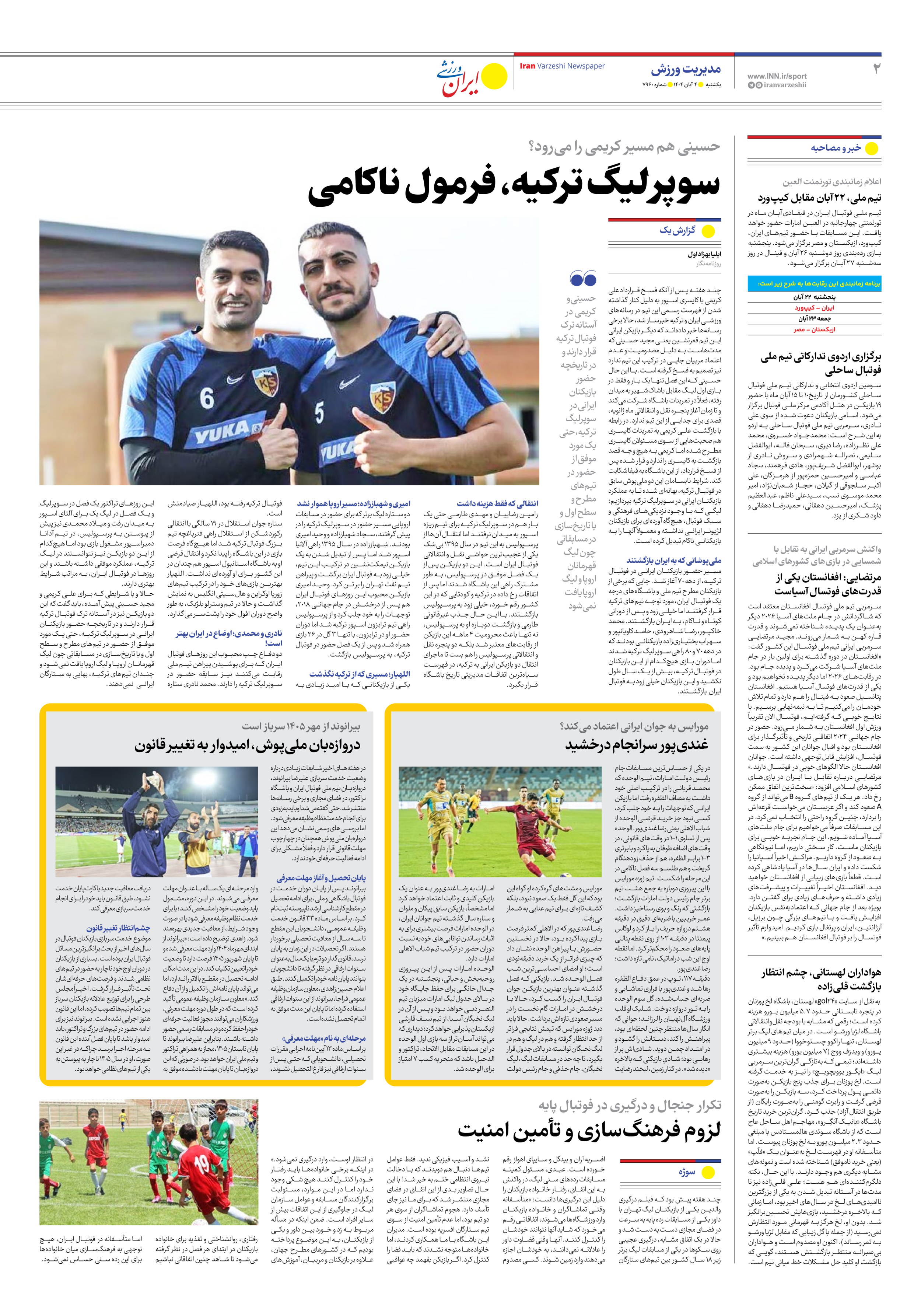 روزنامه ایران ورزشی - شماره هفت هزار و نهصد و شصت - ۰۴ آبان ۱۴۰۴ - صفحه ۲