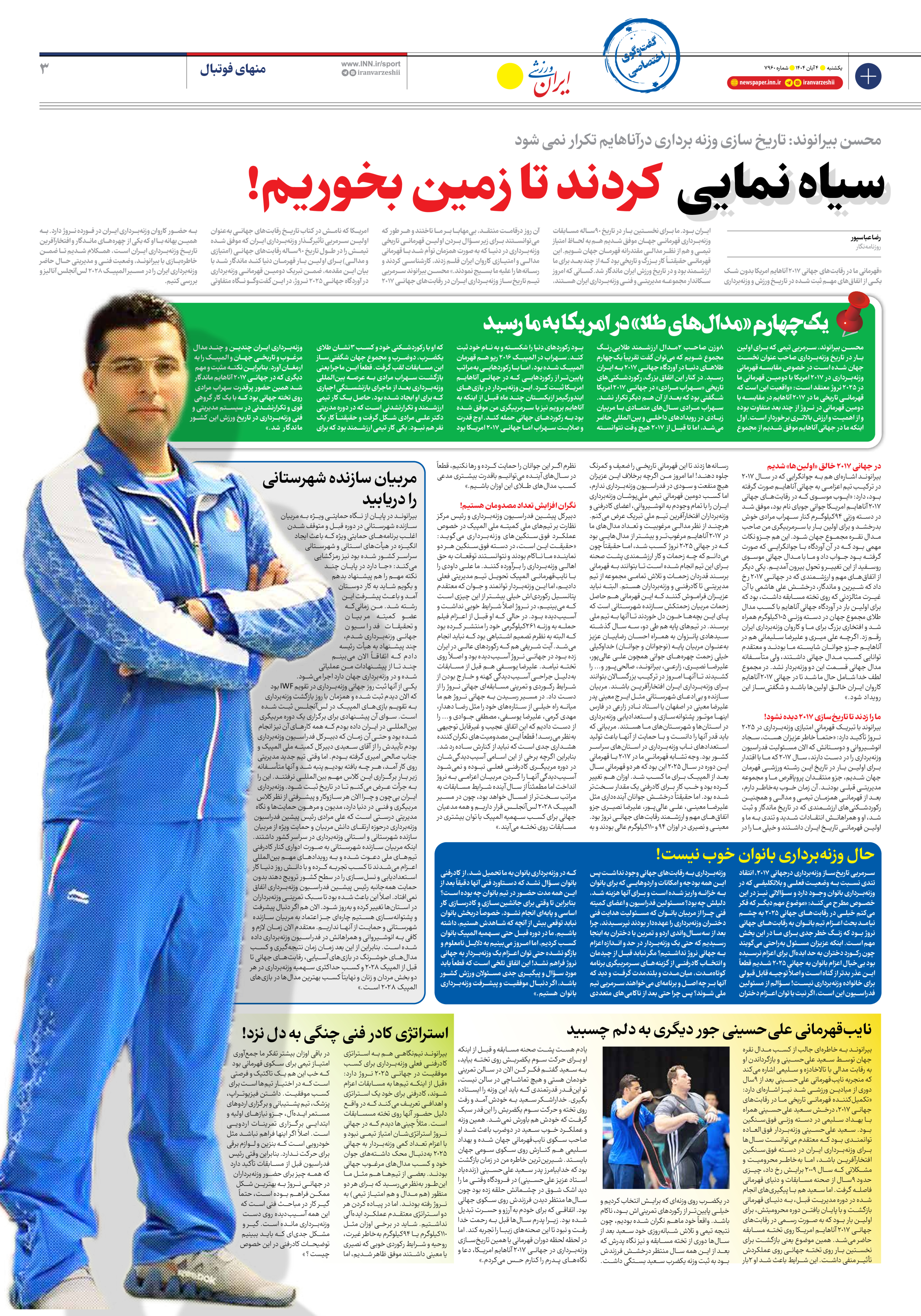 روزنامه ایران ورزشی - شماره هفت هزار و نهصد و شصت - ۰۴ آبان ۱۴۰۴ - صفحه ۳