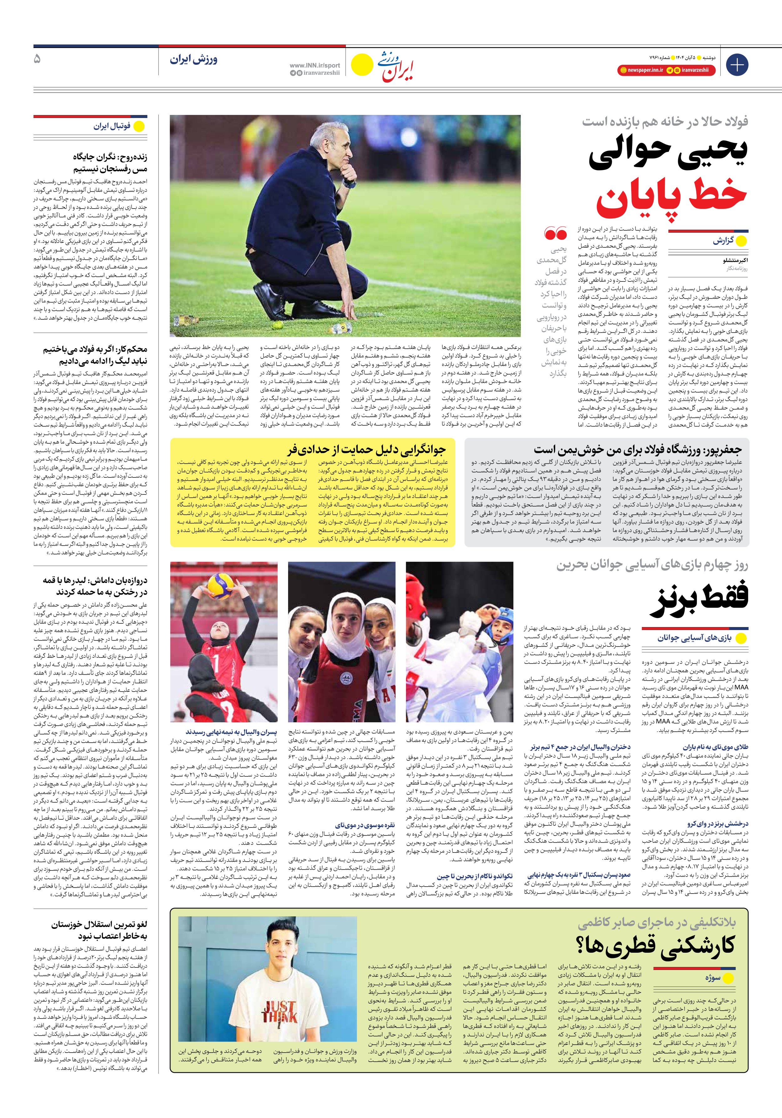 روزنامه ایران ورزشی - شماره هفت هزار و نهصد و شصت و یک - ۰۵ آبان ۱۴۰۴ - صفحه ۵