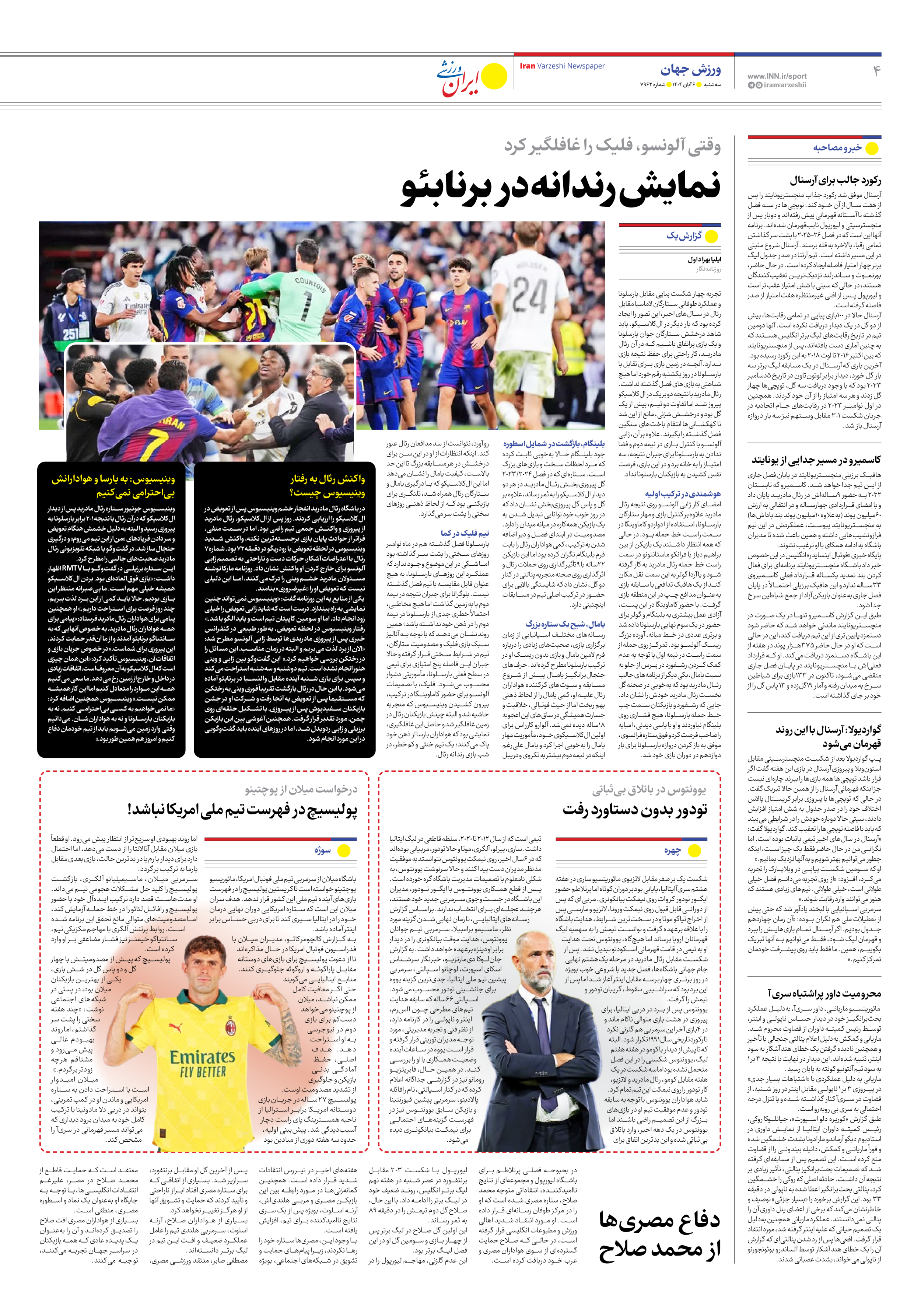 روزنامه ایران ورزشی - شماره هفت هزار و نهصد و شصت و دو - ۰۶ آبان ۱۴۰۴ - صفحه ۴