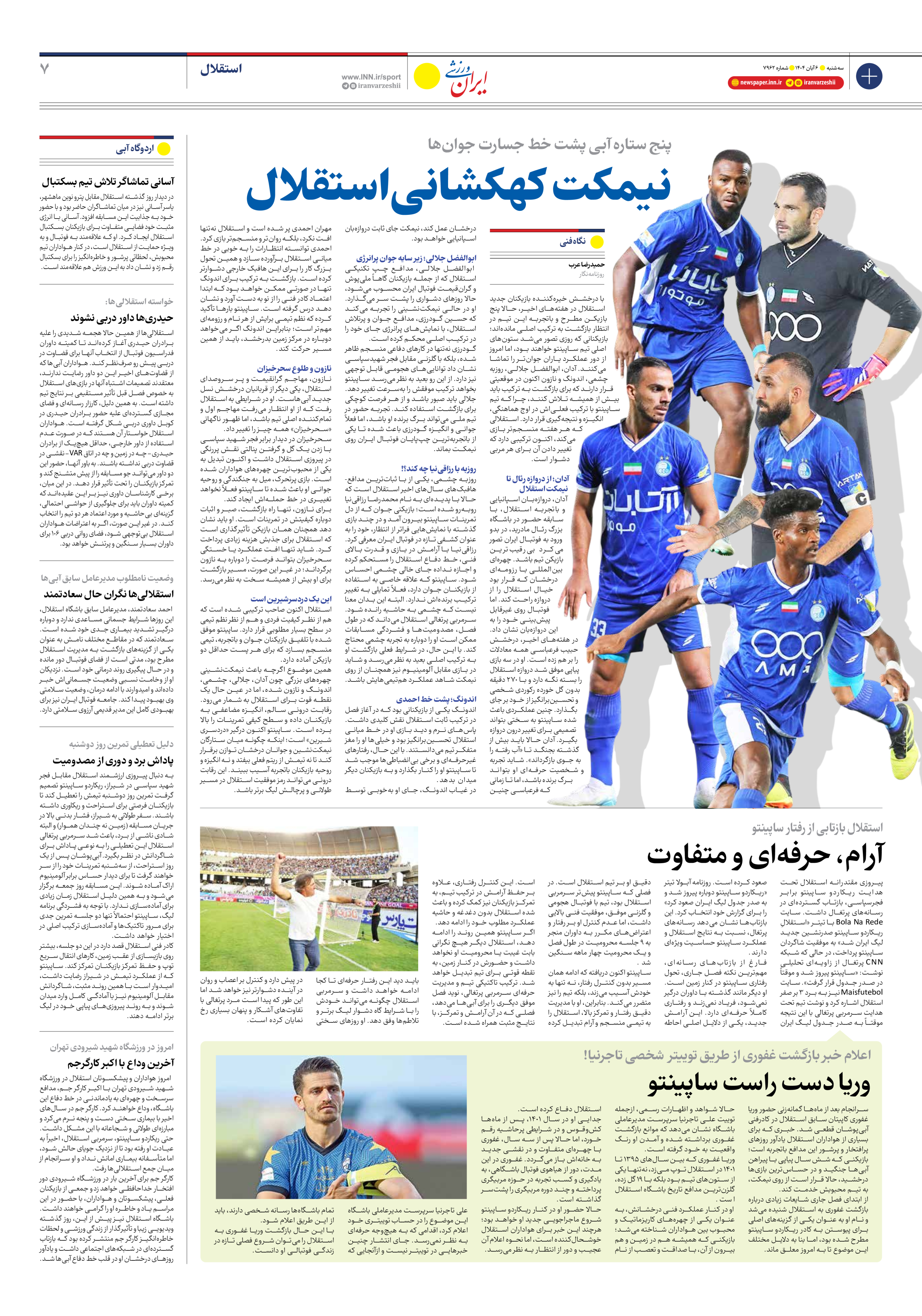 روزنامه ایران ورزشی - شماره هفت هزار و نهصد و شصت و دو - ۰۶ آبان ۱۴۰۴ - صفحه ۷