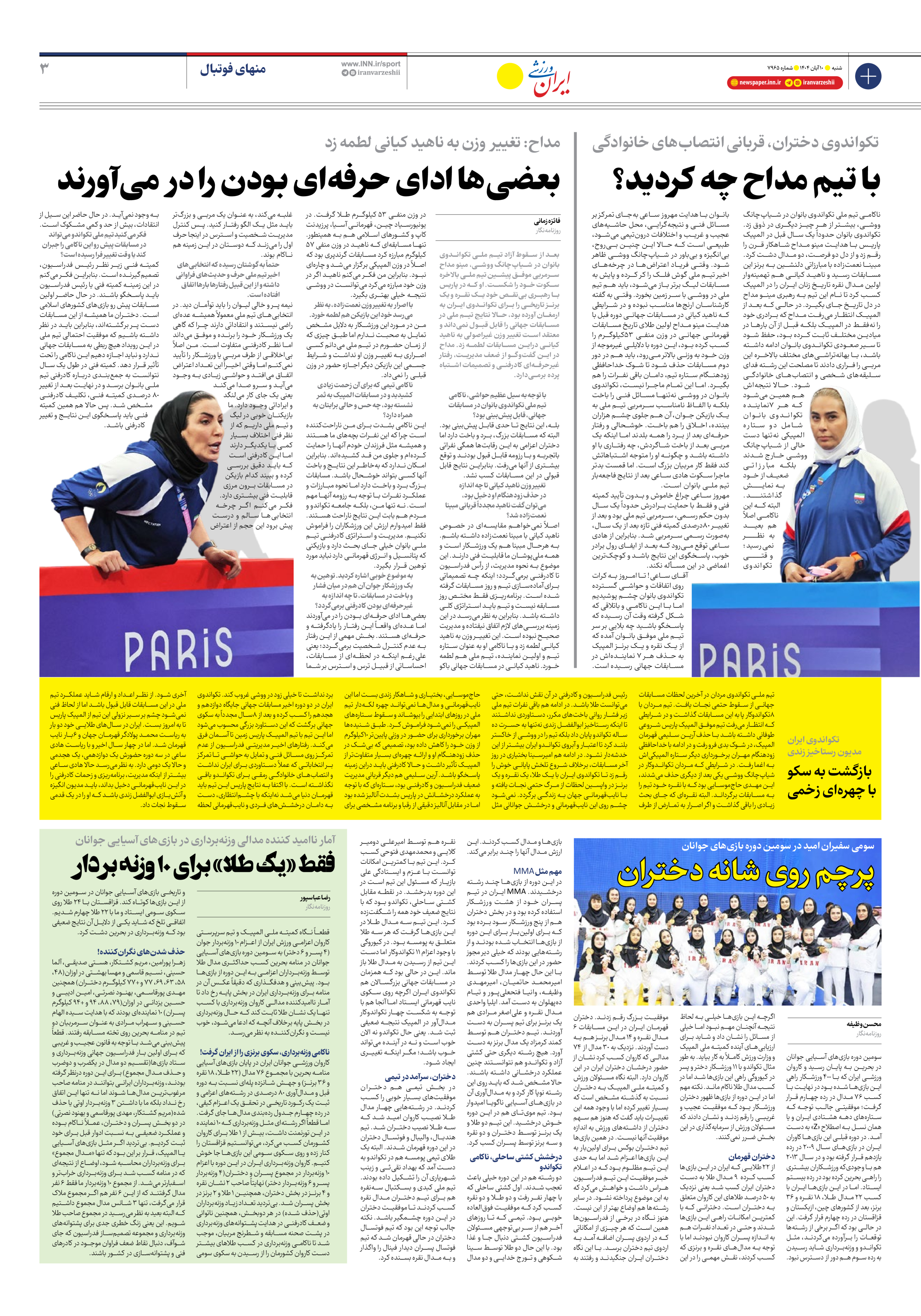 روزنامه ایران ورزشی - شماره هفت هزار و نهصد و شصت و پنج - ۱۰ آبان ۱۴۰۴ - صفحه ۳