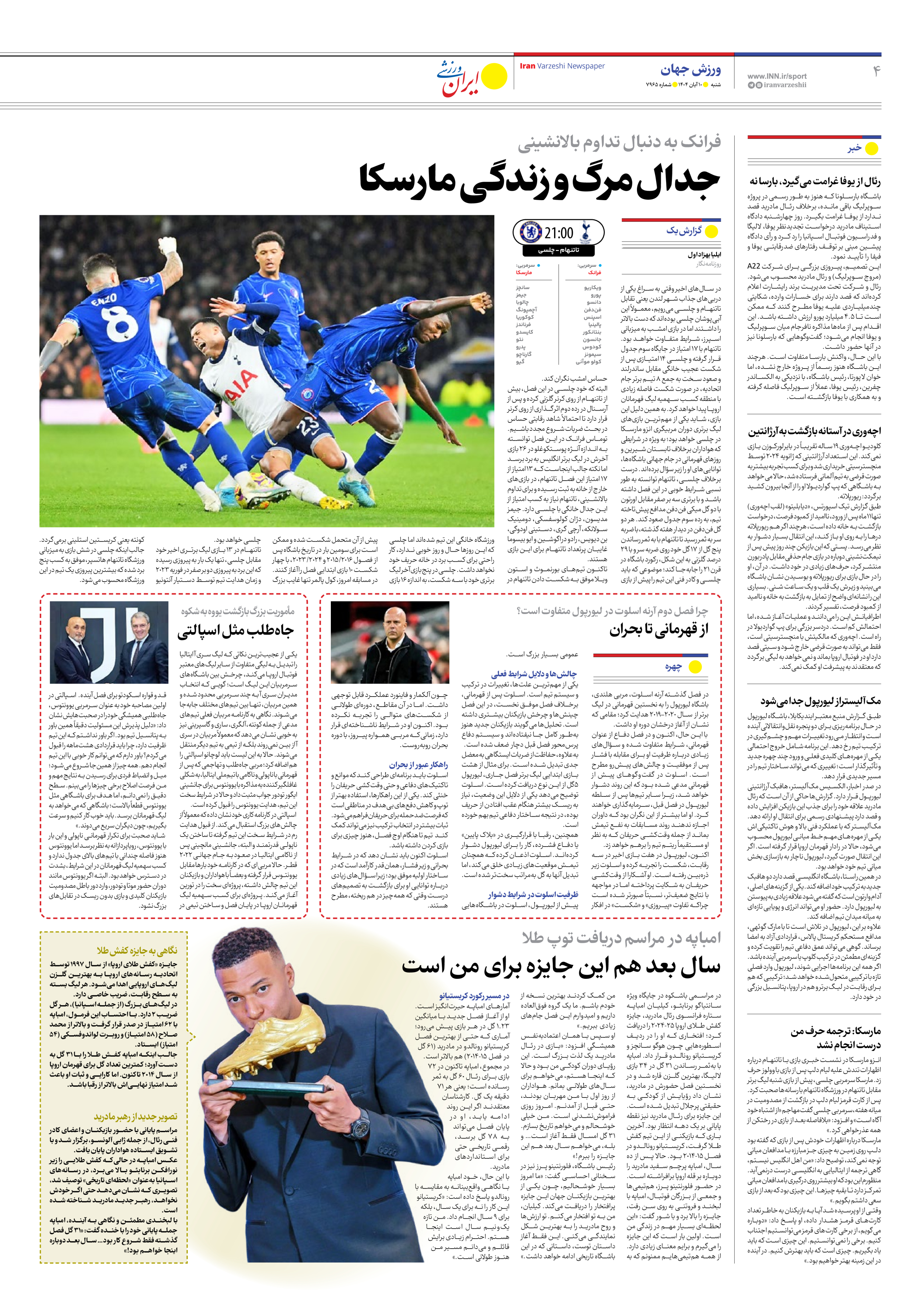 روزنامه ایران ورزشی - شماره هفت هزار و نهصد و شصت و پنج - ۱۰ آبان ۱۴۰۴ - صفحه ۴