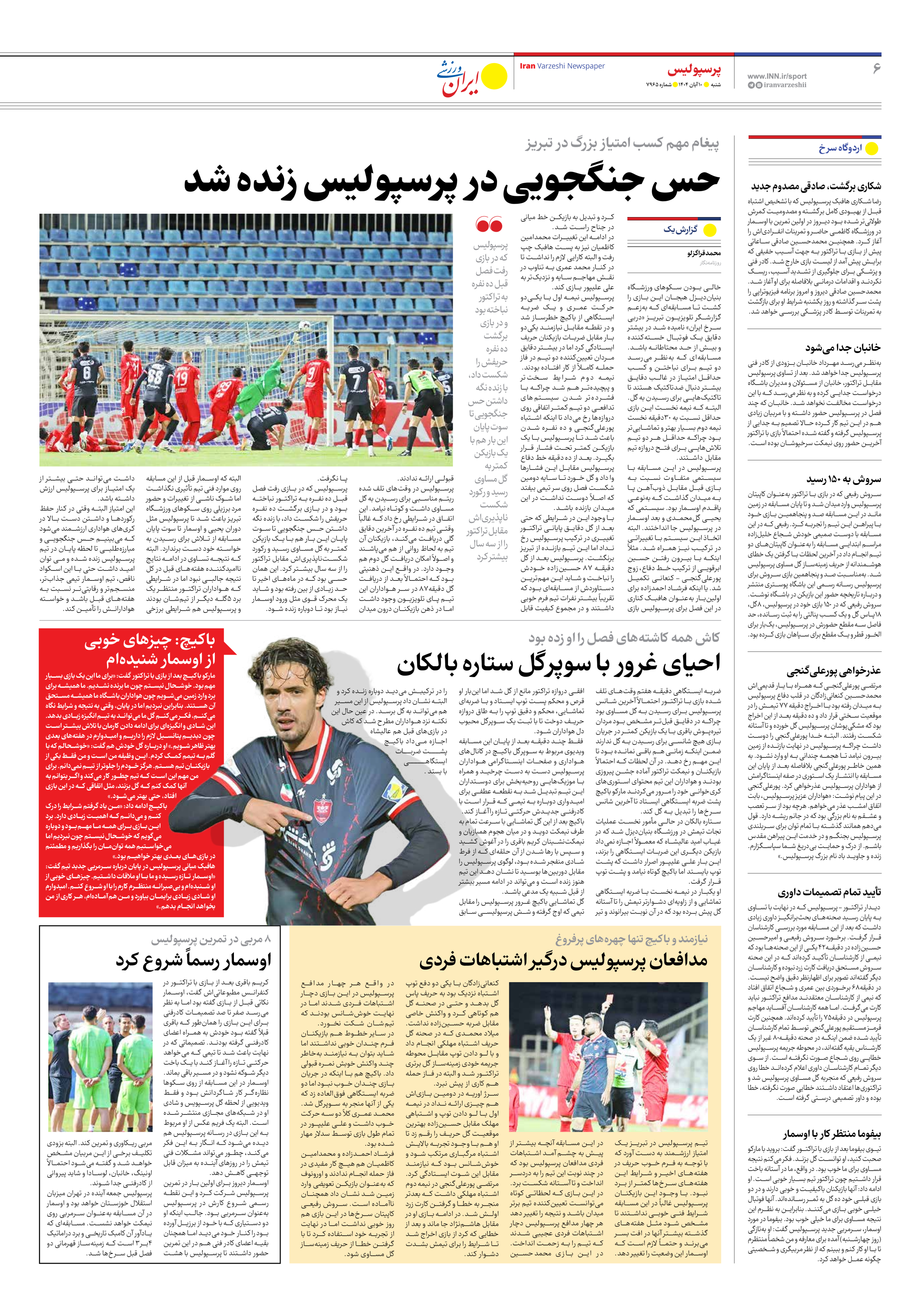 روزنامه ایران ورزشی - شماره هفت هزار و نهصد و شصت و پنج - ۱۰ آبان ۱۴۰۴ - صفحه ۶