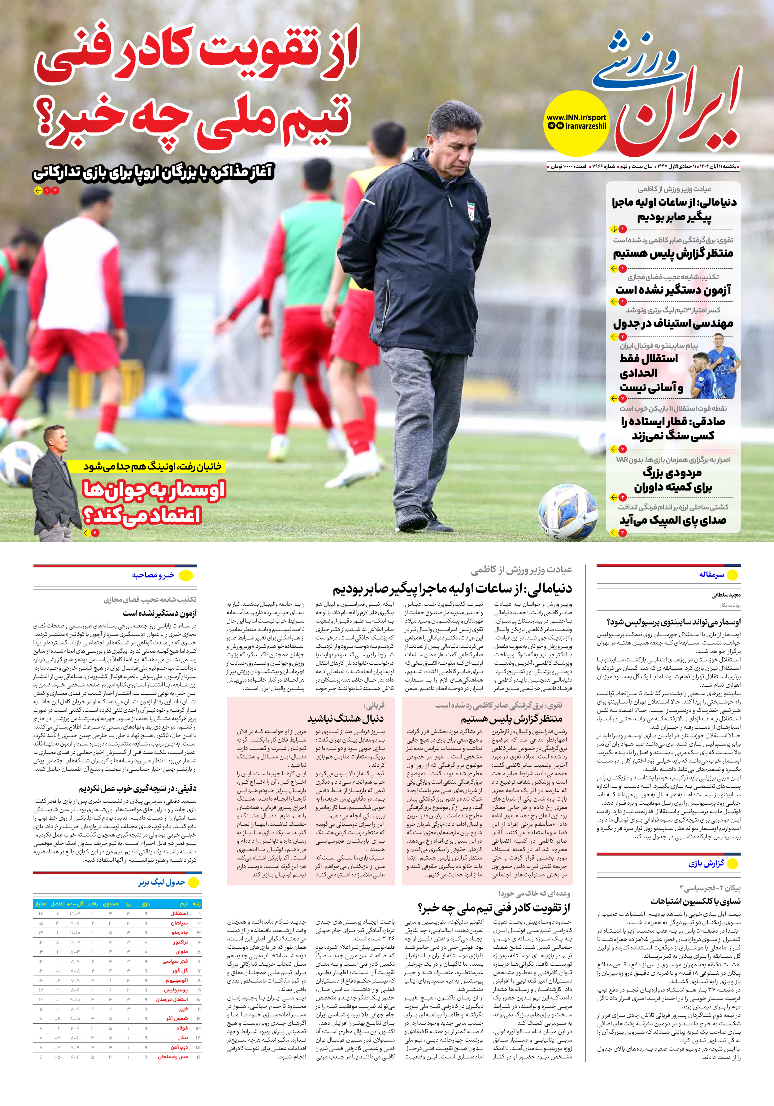 روزنامه ایران ورزشی - شماره هفت هزار و نهصد و شصت و شش - ۱۱ آبان ۱۴۰۴