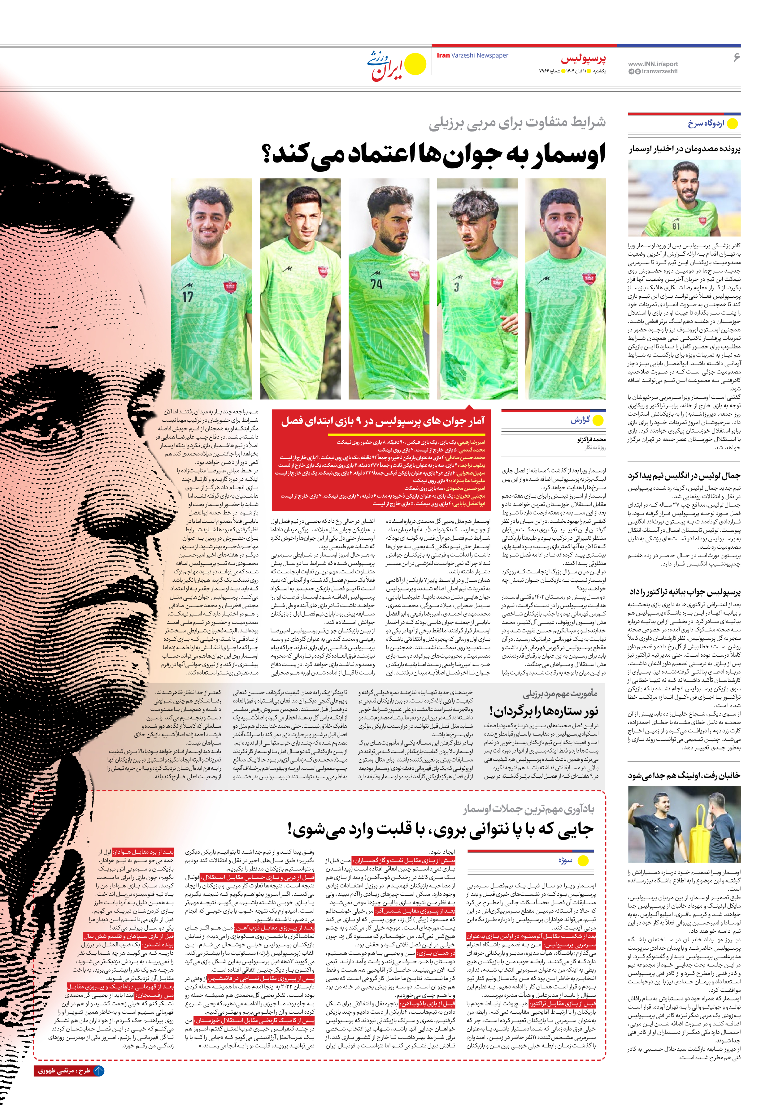 روزنامه ایران ورزشی - شماره هفت هزار و نهصد و شصت و شش - ۱۱ آبان ۱۴۰۴ - صفحه ۶