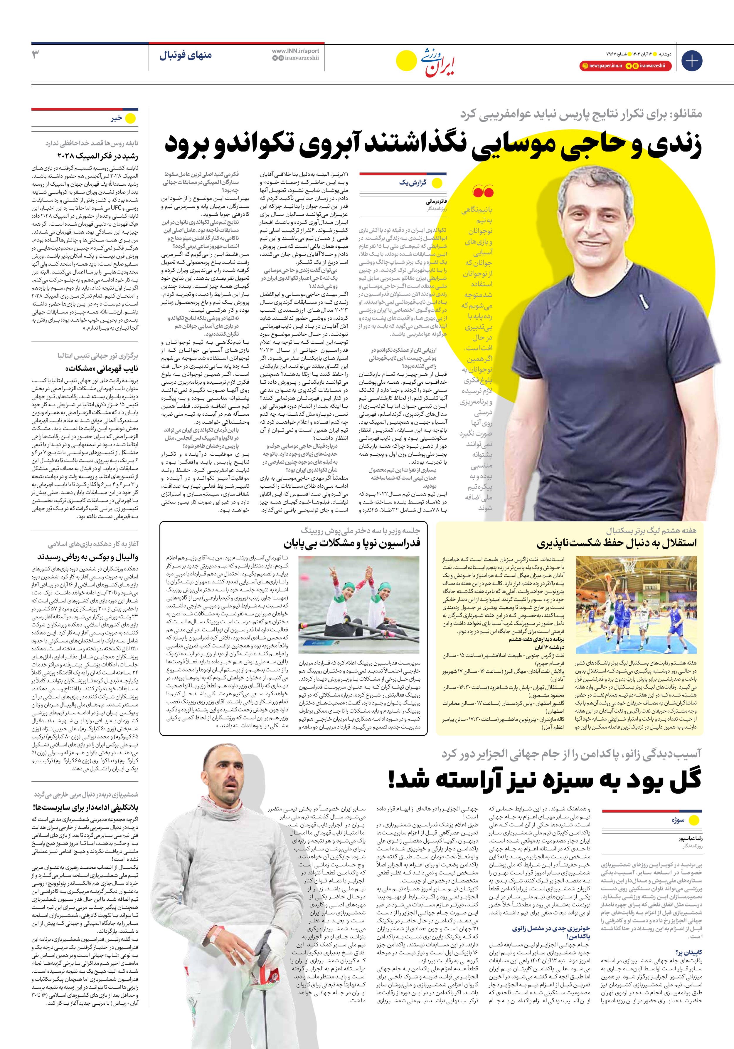 روزنامه ایران ورزشی - شماره هفت هزار و نهصد و شصت و هفت - ۱۲ آبان ۱۴۰۴ - صفحه ۳
