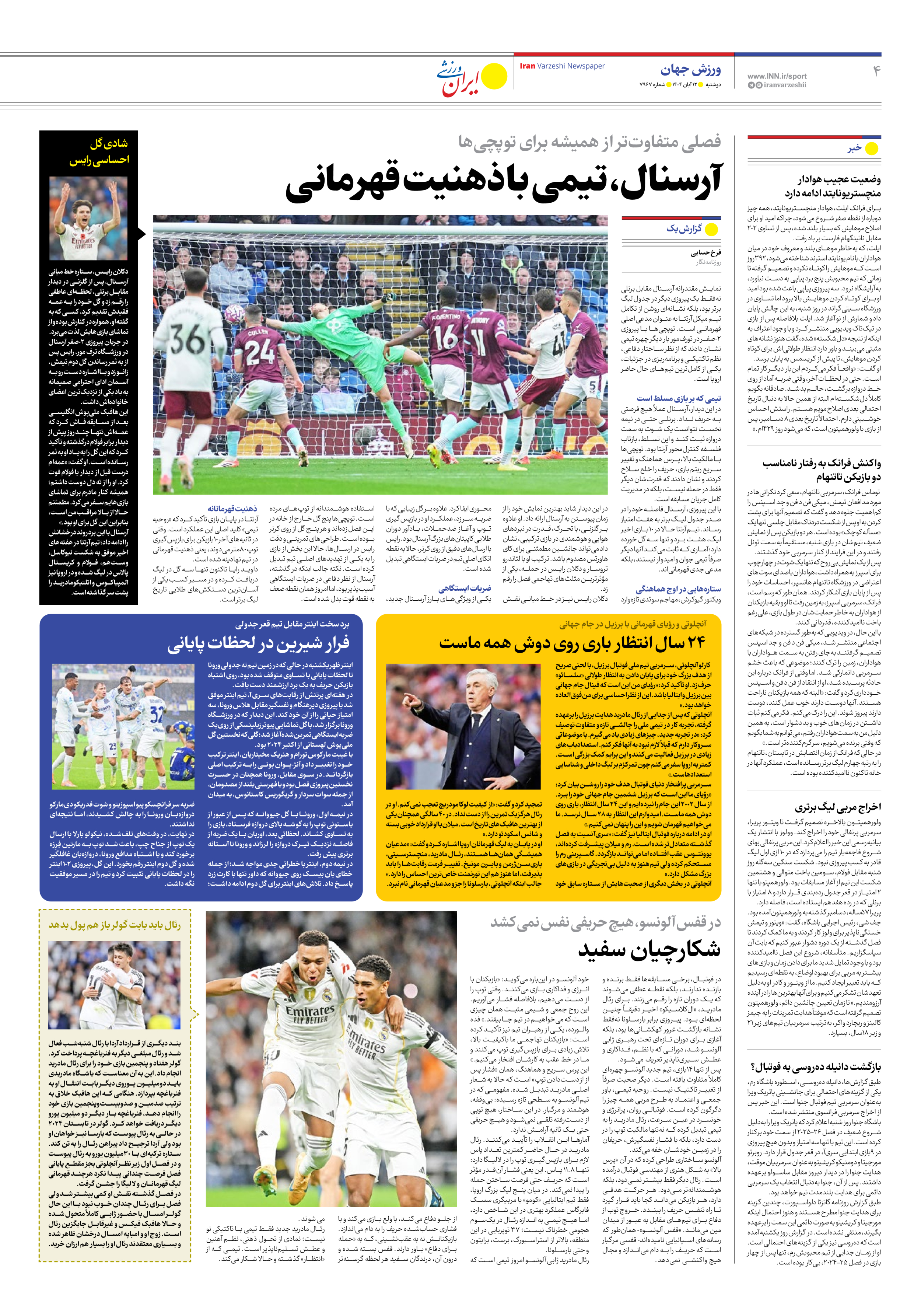 روزنامه ایران ورزشی - شماره هفت هزار و نهصد و شصت و هفت - ۱۲ آبان ۱۴۰۴ - صفحه ۴