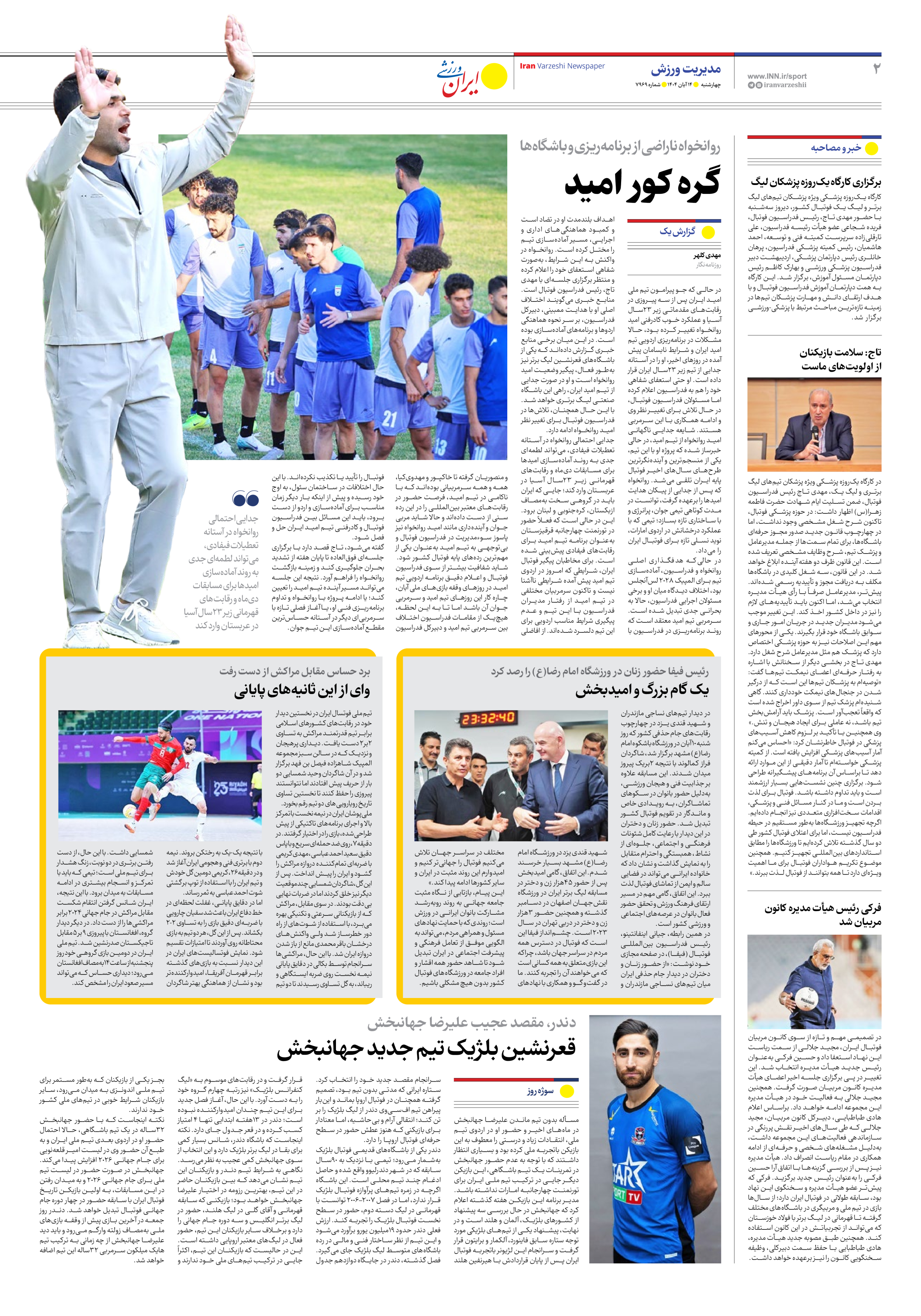 روزنامه ایران ورزشی - شماره هفت هزار و نهصد و شصت و نه - ۱۴ آبان ۱۴۰۴ - صفحه ۲