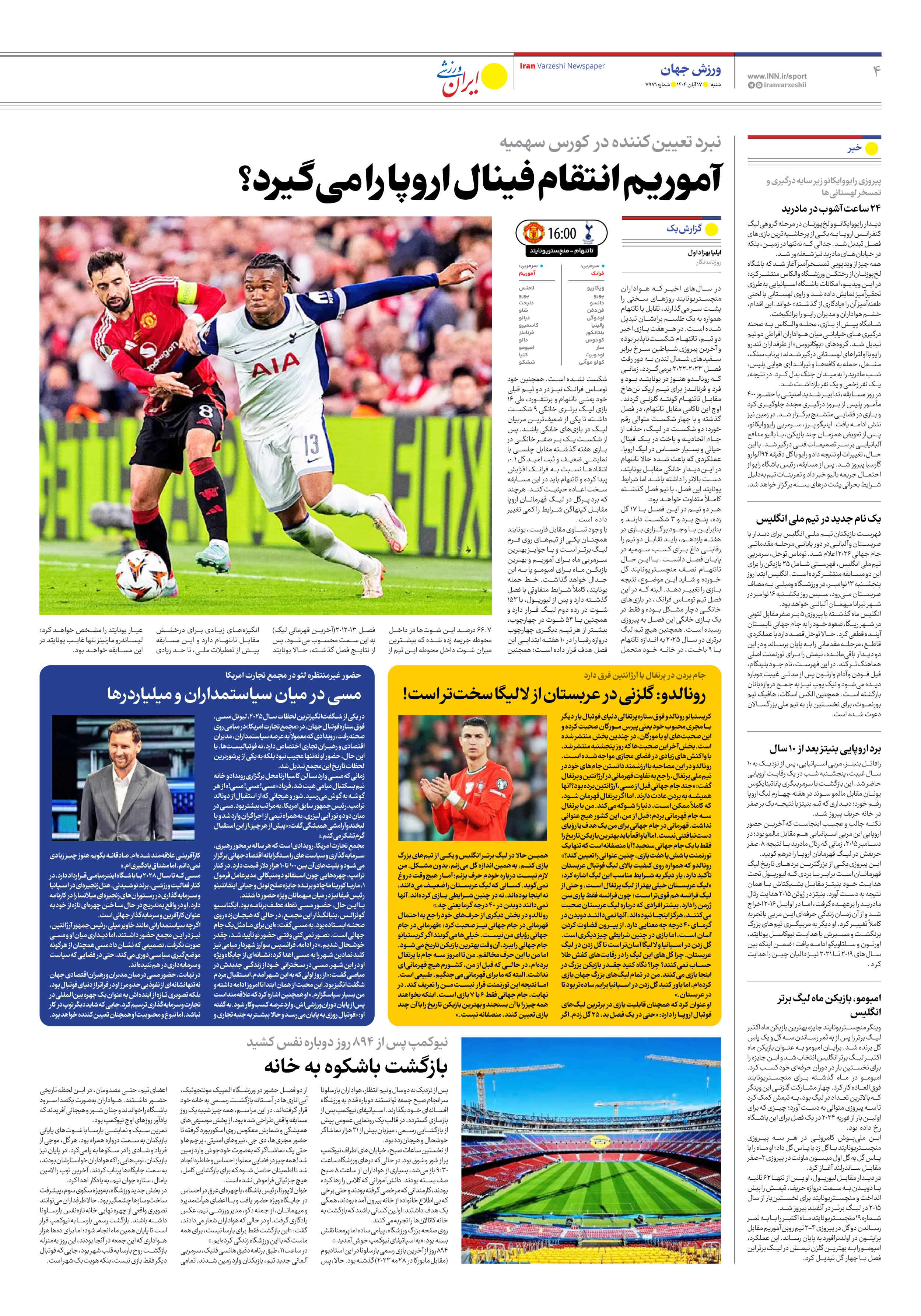 روزنامه ایران ورزشی - شماره هفت هزار و نهصد و هفتاد و یک - ۱۷ آبان ۱۴۰۴ - صفحه ۴
