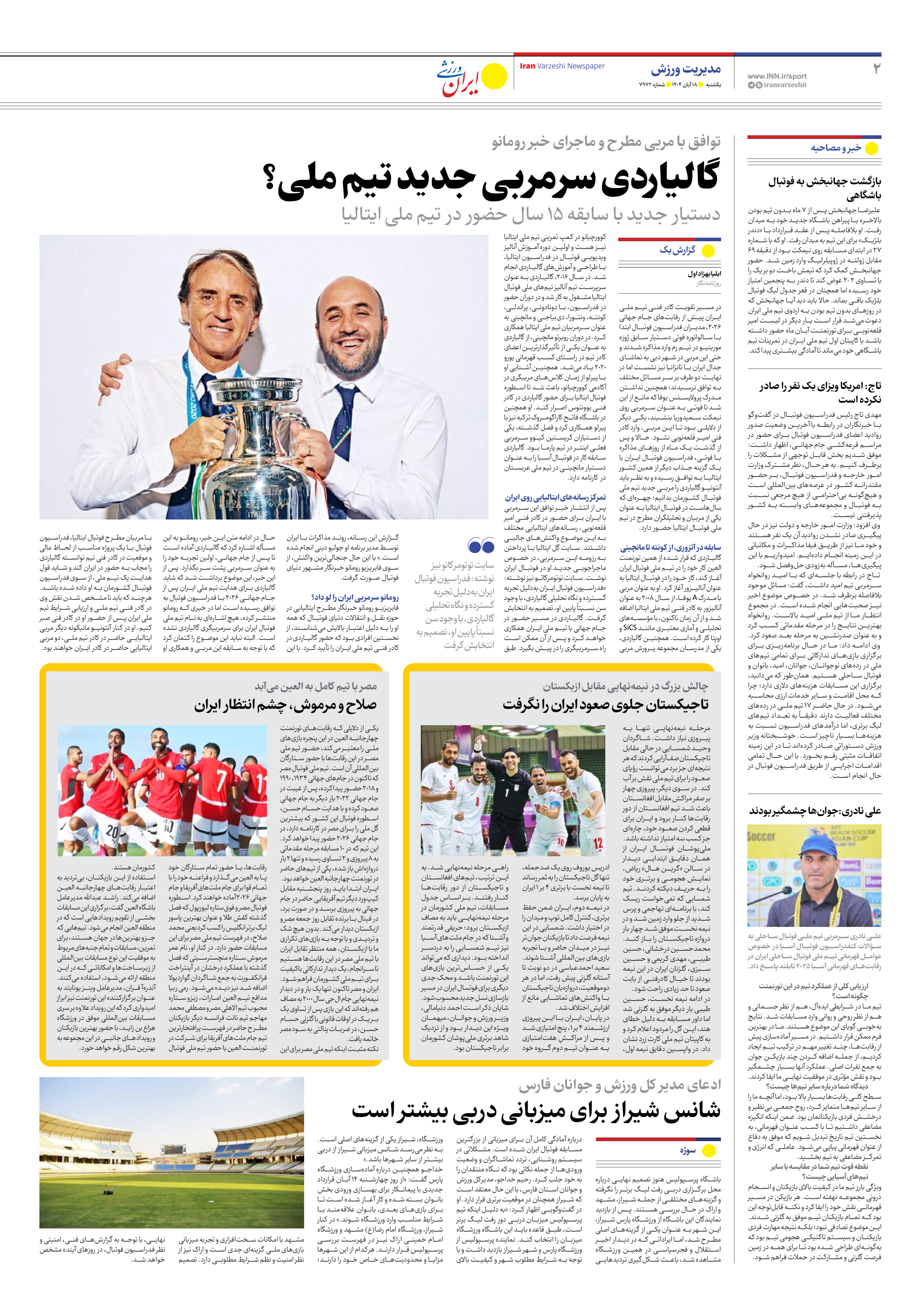 روزنامه ایران ورزشی - شماره هفت هزار و نهصد و هفتاد و دو - ۱۸ آبان ۱۴۰۴ - صفحه ۲