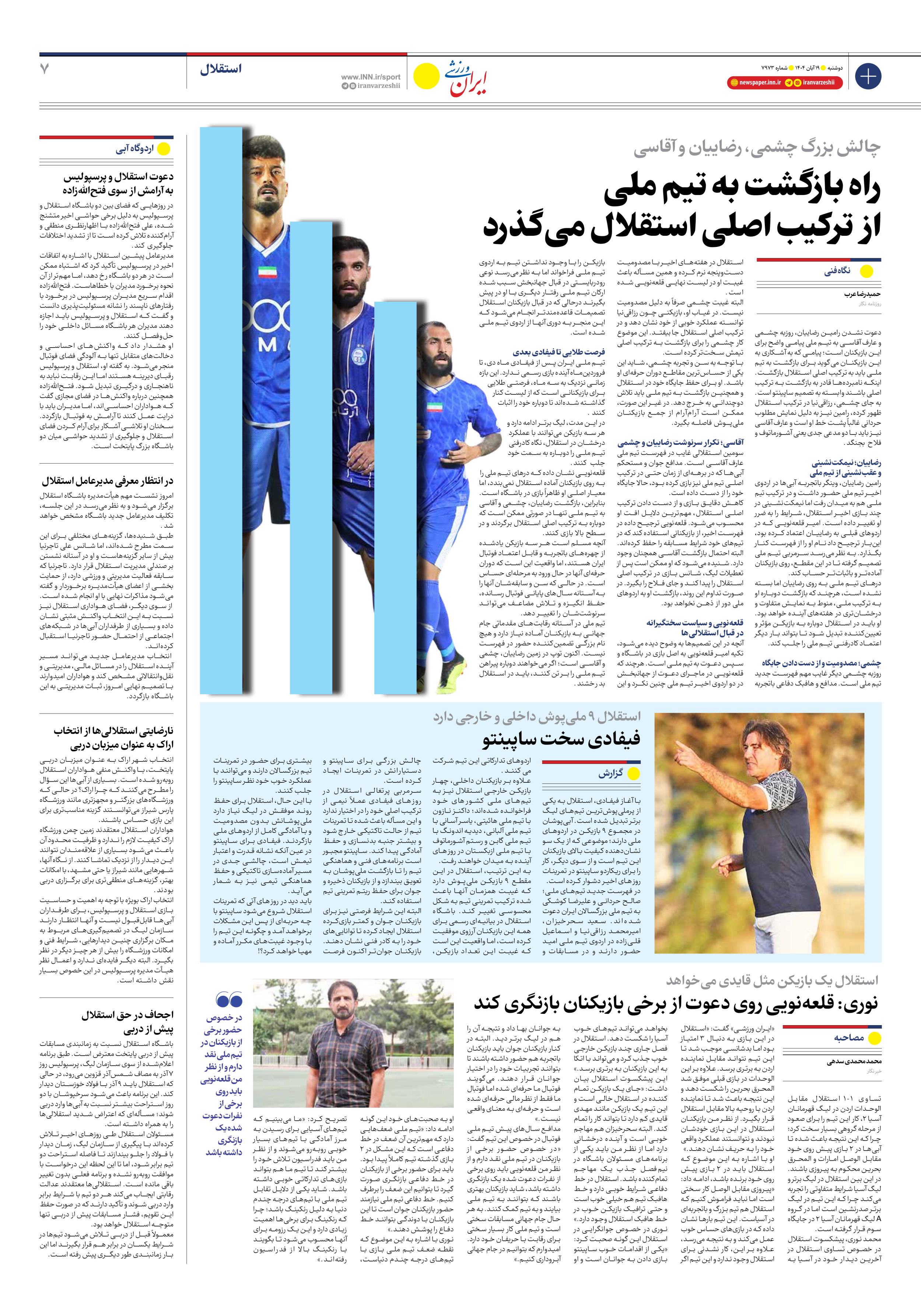 روزنامه ایران ورزشی - شماره هفت هزار و نهصد و هفتاد و سه - ۱۹ آبان ۱۴۰۴ - صفحه ۷