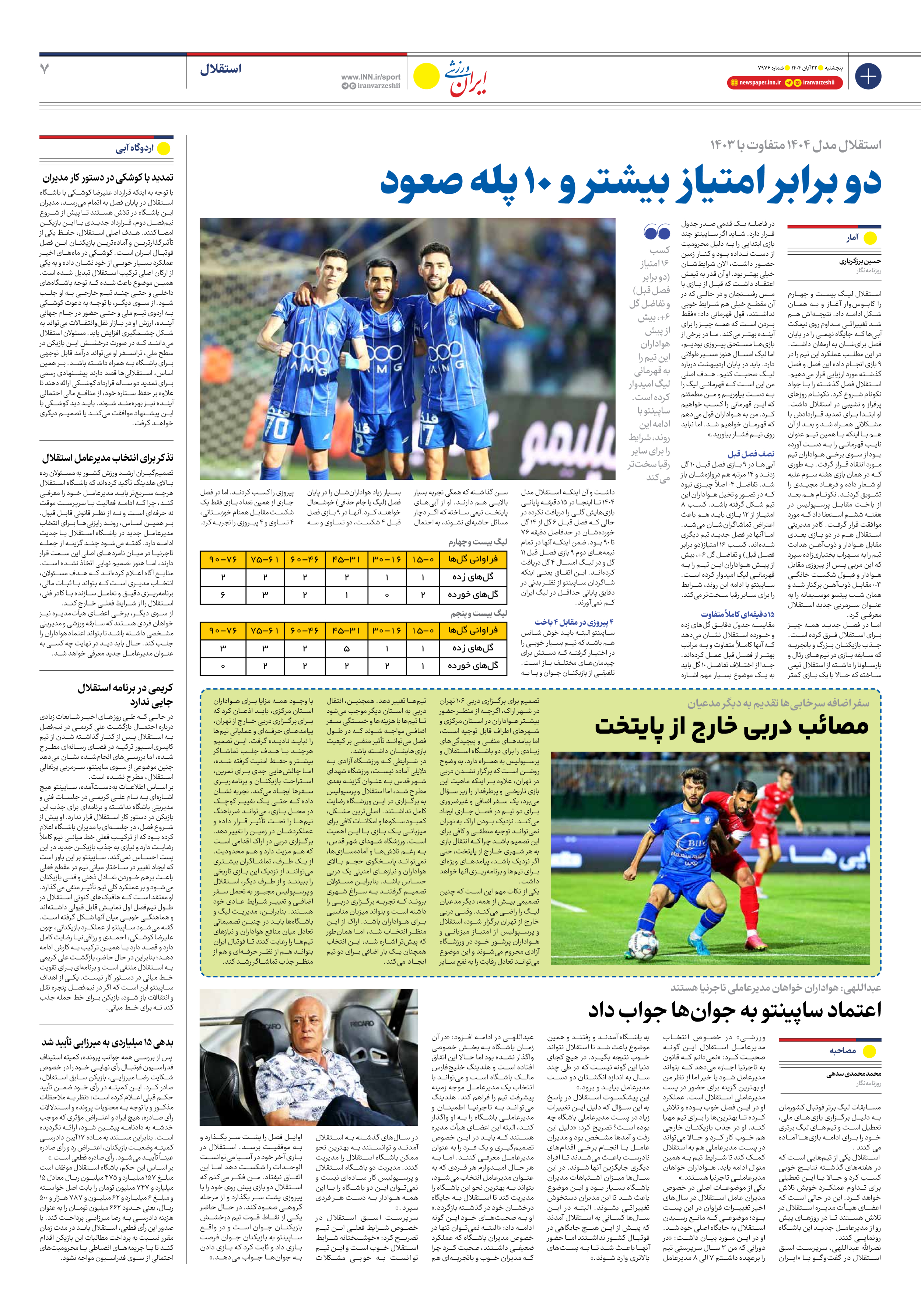 روزنامه ایران ورزشی - شماره هفت هزار و نهصد و هفتاد و شش - ۲۲ آبان ۱۴۰۴ - صفحه ۷