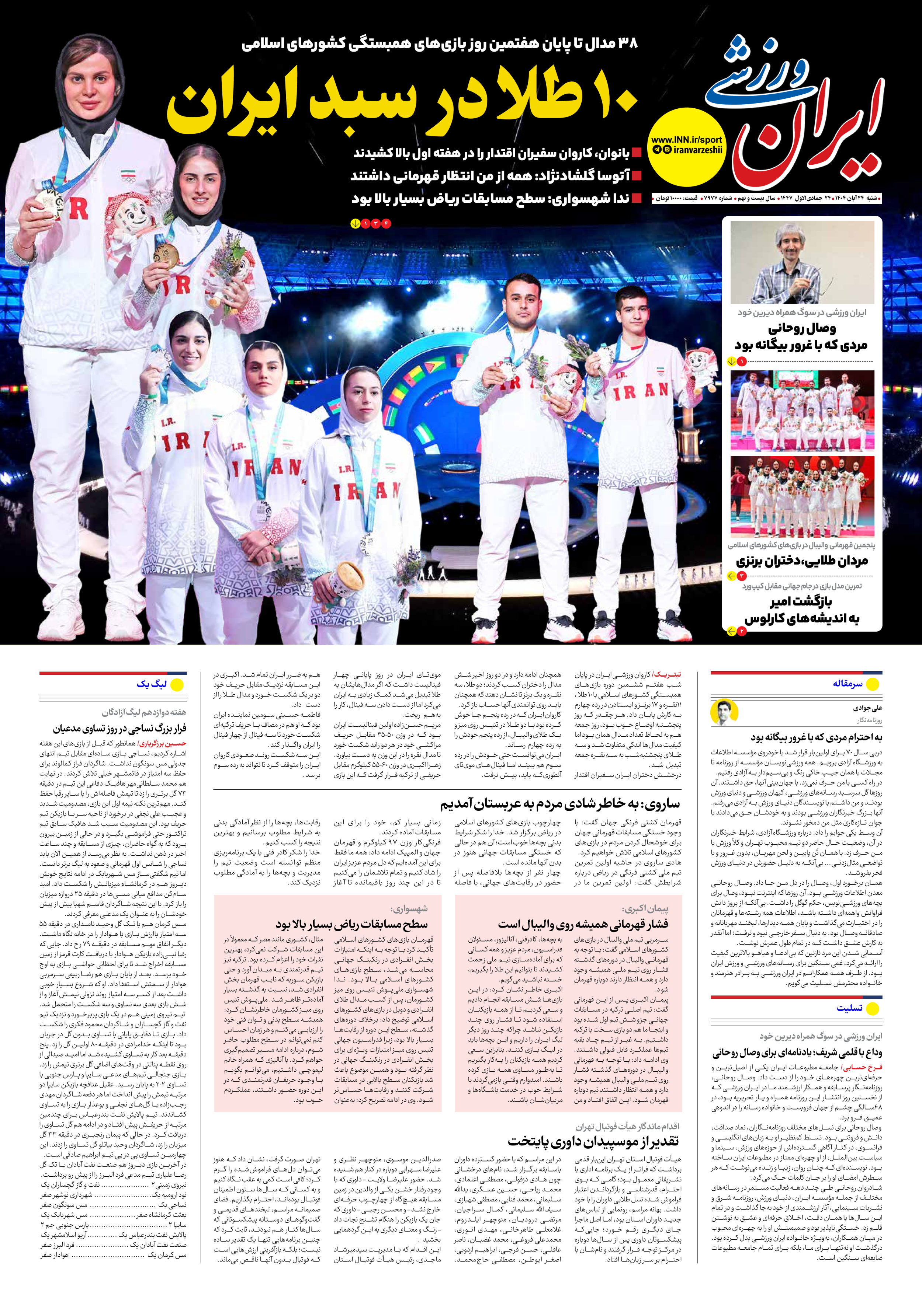 شماره هفت هزار و نهصد و هفتاد و هفت - ۲۴ آبان ۱۴۰۴
