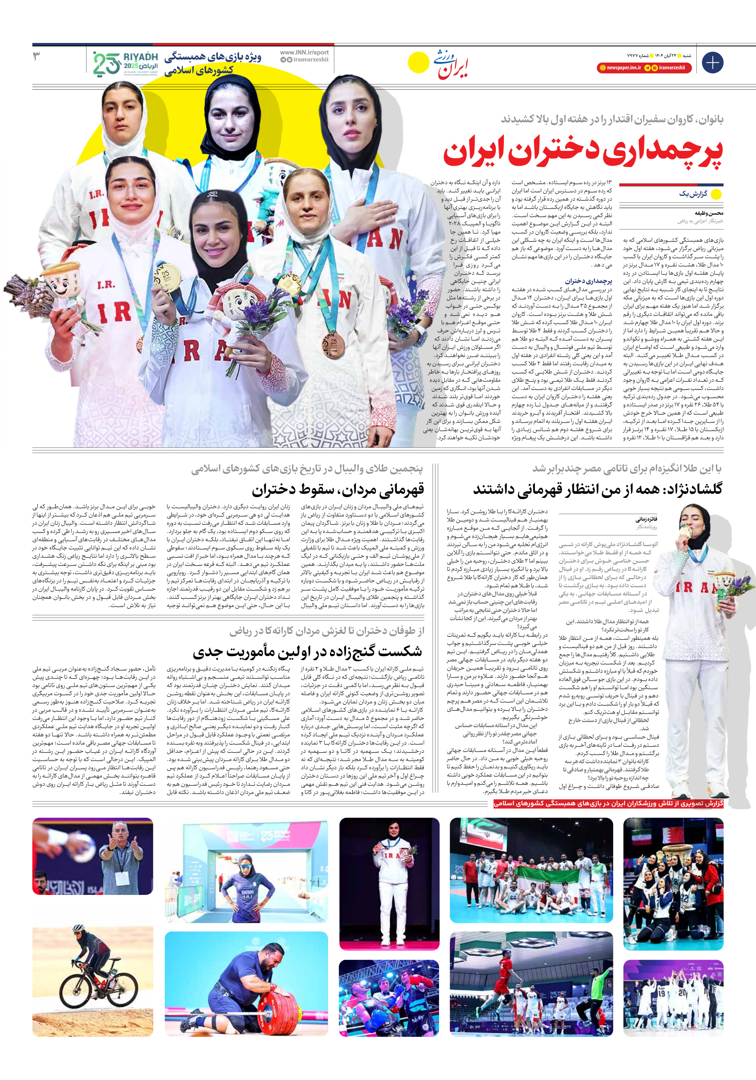 روزنامه ایران ورزشی - شماره هفت هزار و نهصد و هفتاد و هفت - ۲۴ آبان ۱۴۰۴ - صفحه ۳