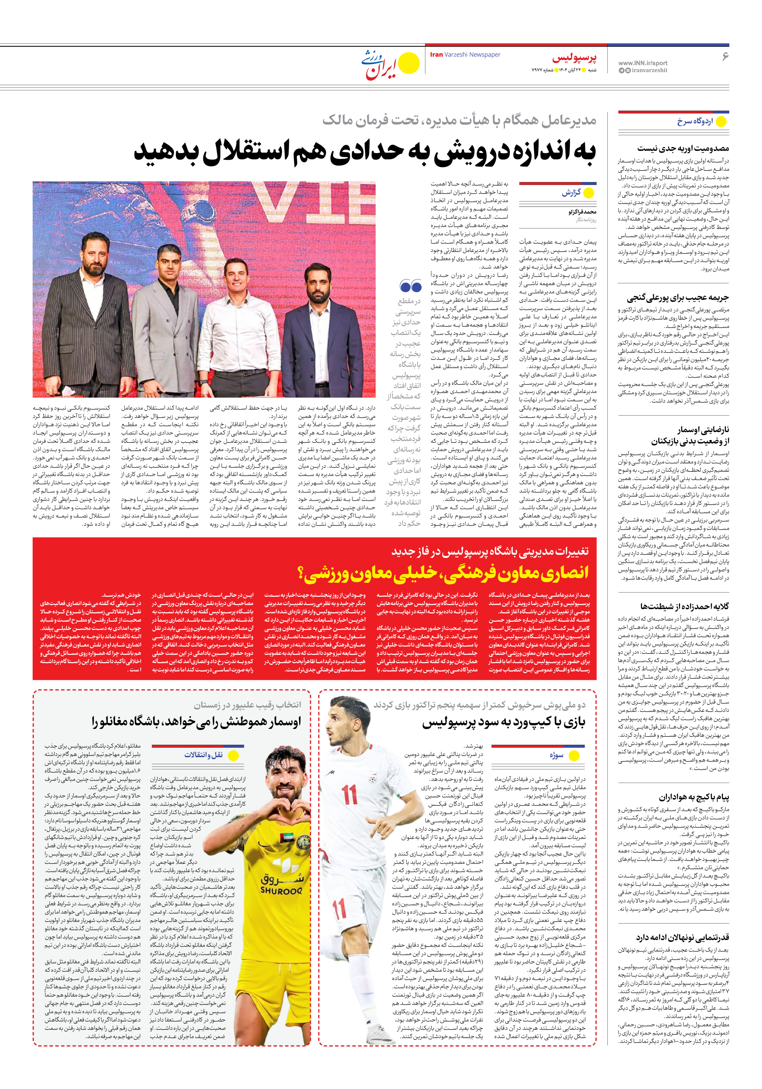 روزنامه ایران ورزشی - شماره هفت هزار و نهصد و هفتاد و هفت - ۲۴ آبان ۱۴۰۴ - صفحه ۶