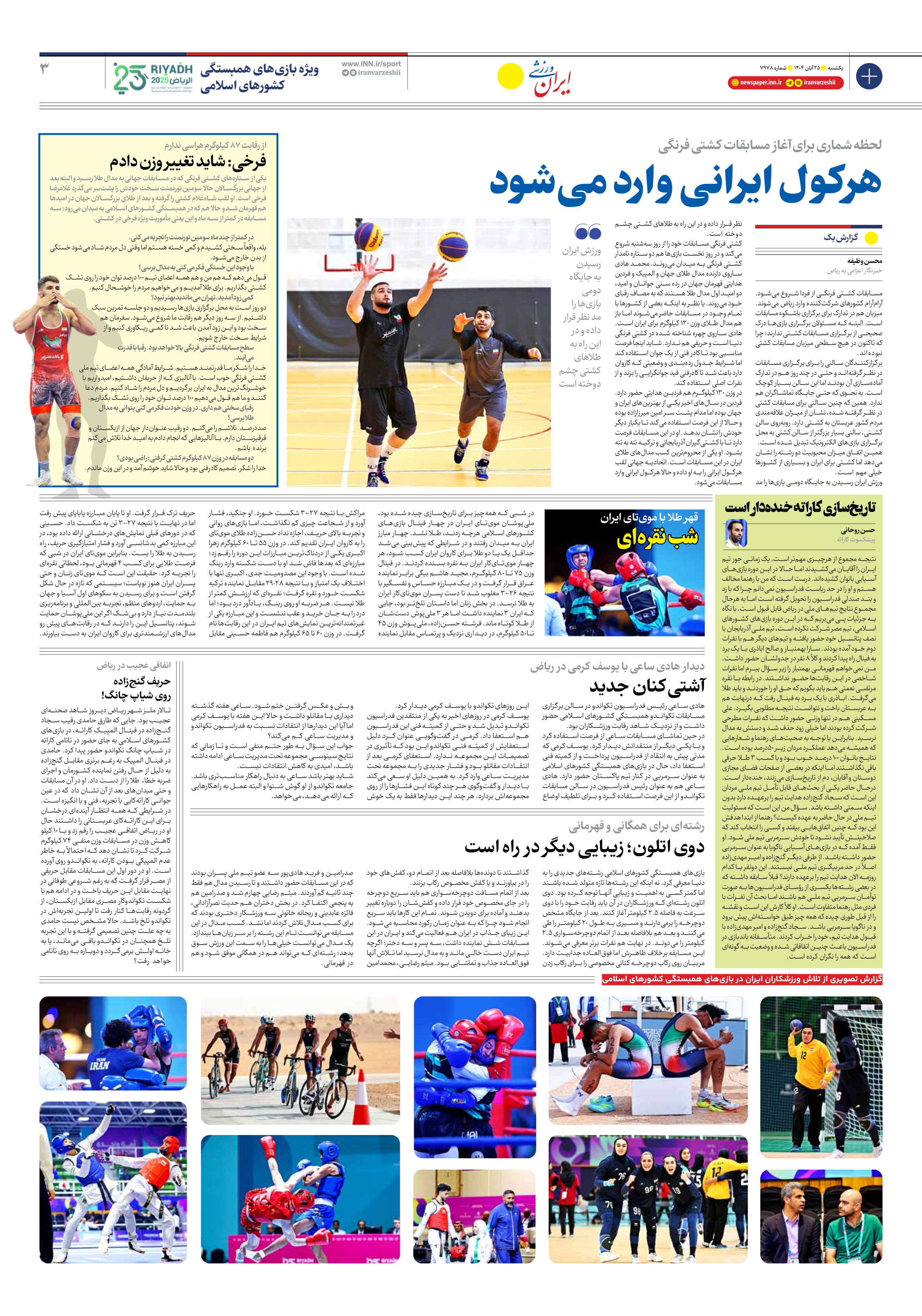 روزنامه ایران ورزشی - شماره هفت هزار و نهصد و هفتاد و هشت - ۲۵ آبان ۱۴۰۴ - صفحه ۳