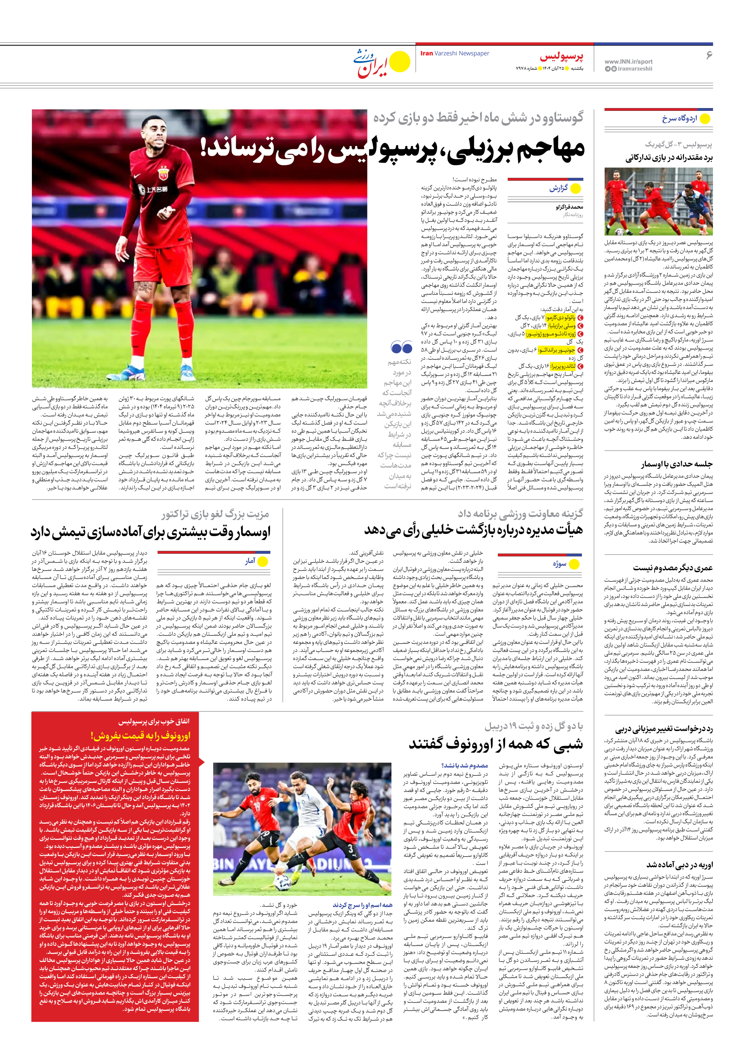 روزنامه ایران ورزشی - شماره هفت هزار و نهصد و هفتاد و هشت - ۲۵ آبان ۱۴۰۴ - صفحه ۶