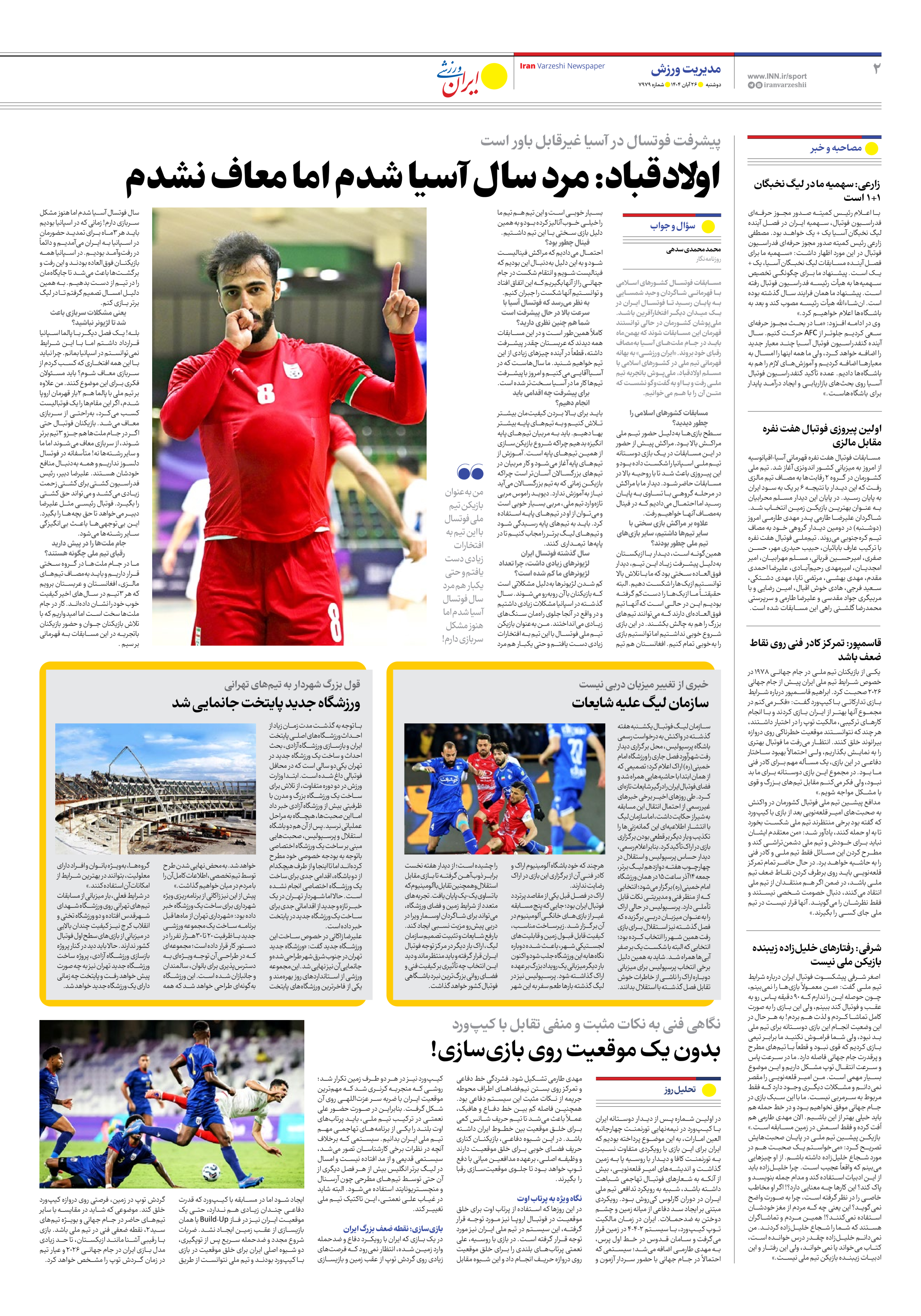روزنامه ایران ورزشی - شماره هفت هزار و نهصد و هفتاد و نه - ۲۶ آبان ۱۴۰۴ - صفحه ۲