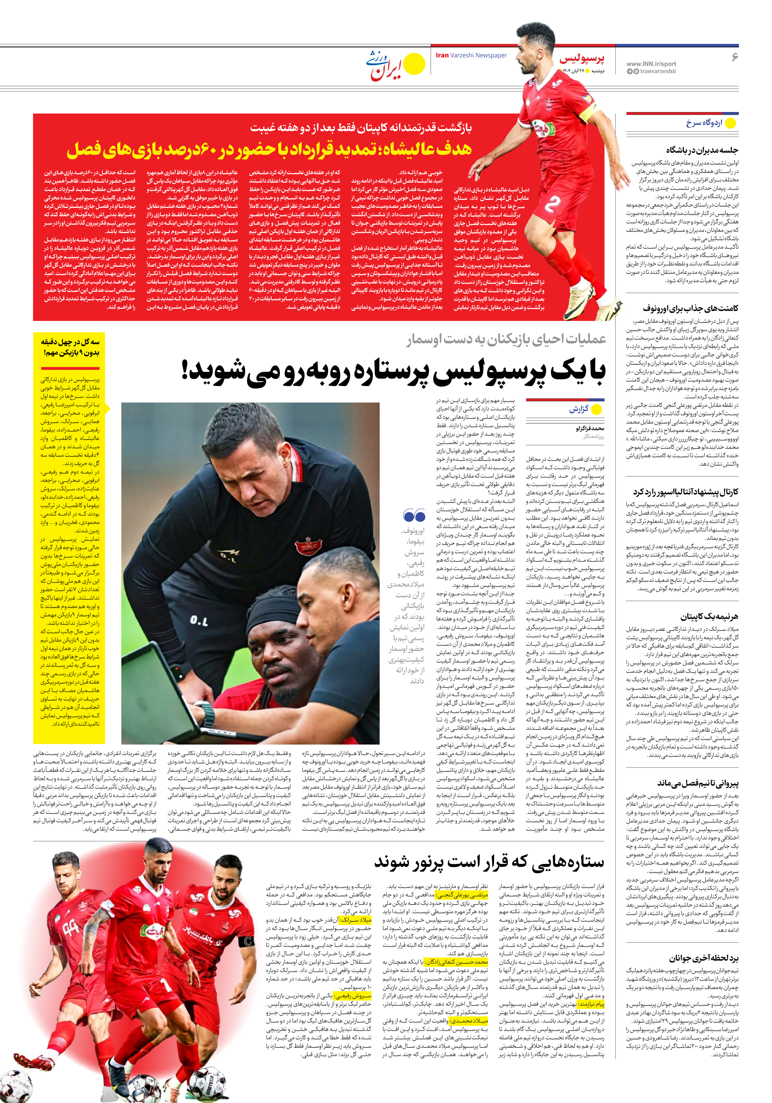 روزنامه ایران ورزشی - شماره هفت هزار و نهصد و هفتاد و نه - ۲۶ آبان ۱۴۰۴ - صفحه ۶