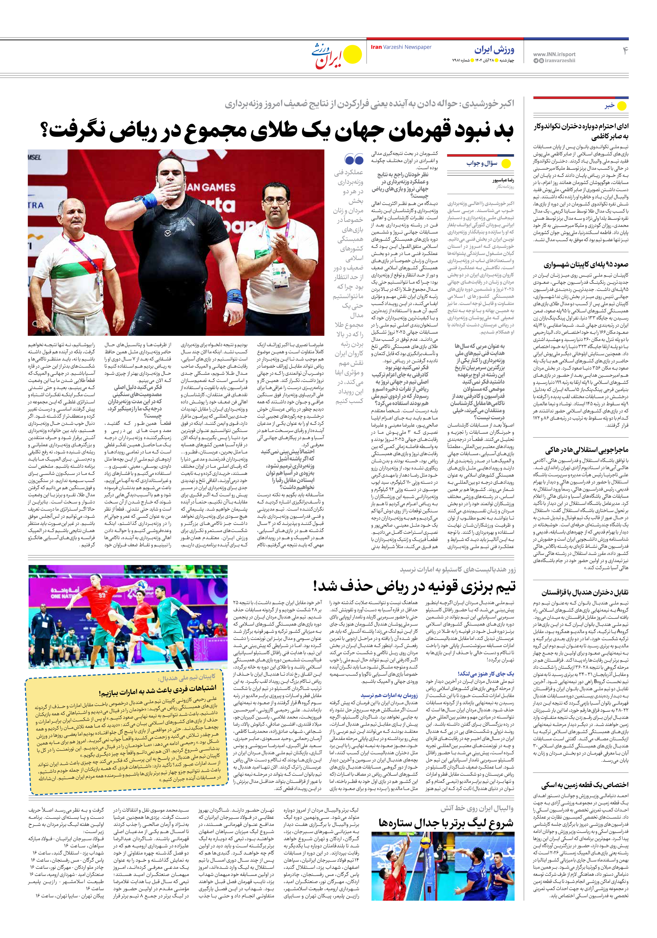 روزنامه ایران ورزشی - شماره هفت هزار و نهصد و هشتاد و یک - ۲۸ آبان ۱۴۰۴ - صفحه ۴