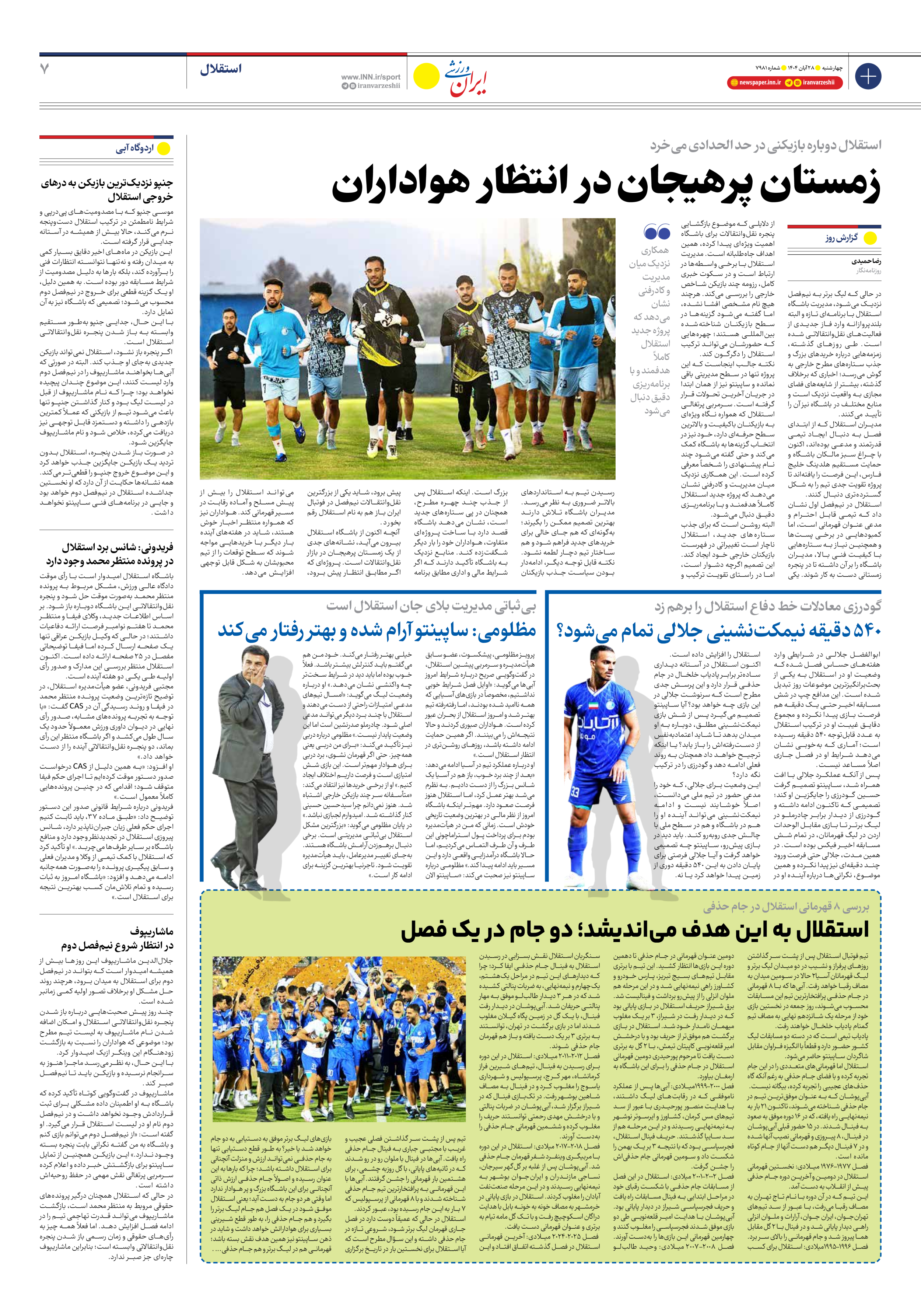 روزنامه ایران ورزشی - شماره هفت هزار و نهصد و هشتاد و یک - ۲۸ آبان ۱۴۰۴ - صفحه ۷