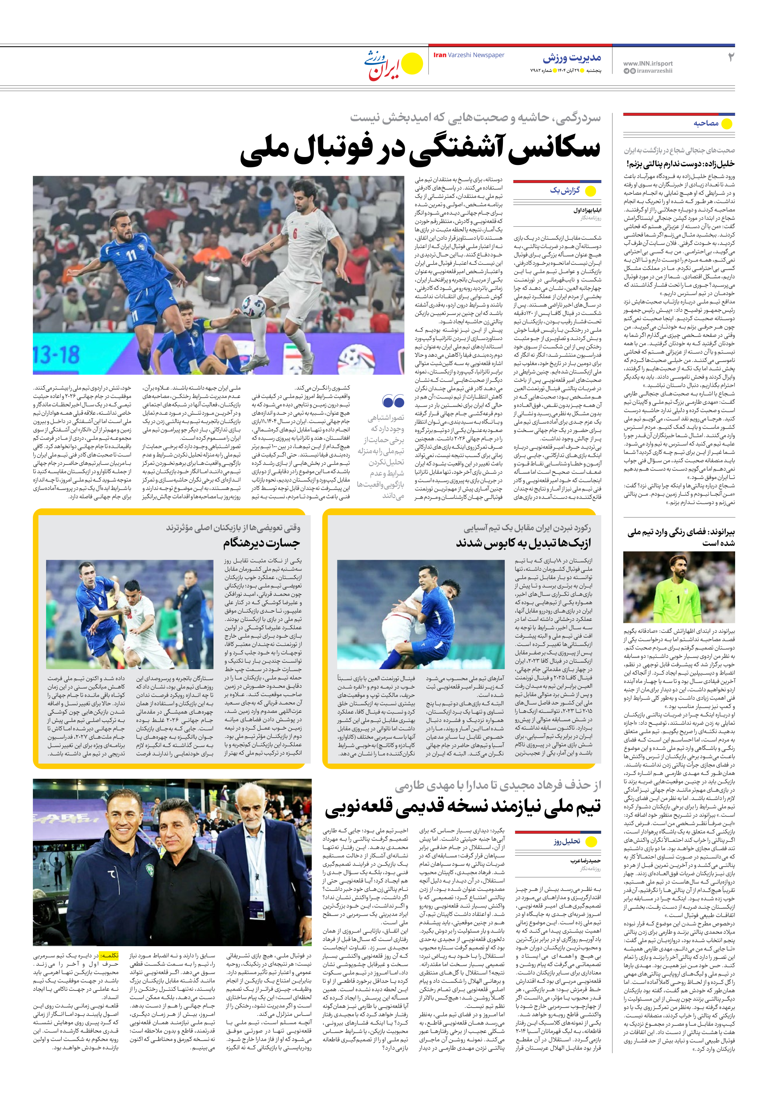 روزنامه ایران ورزشی - شماره هفت هزار و نهصد و هشتاد و دو - ۲۹ آبان ۱۴۰۴ - صفحه ۲