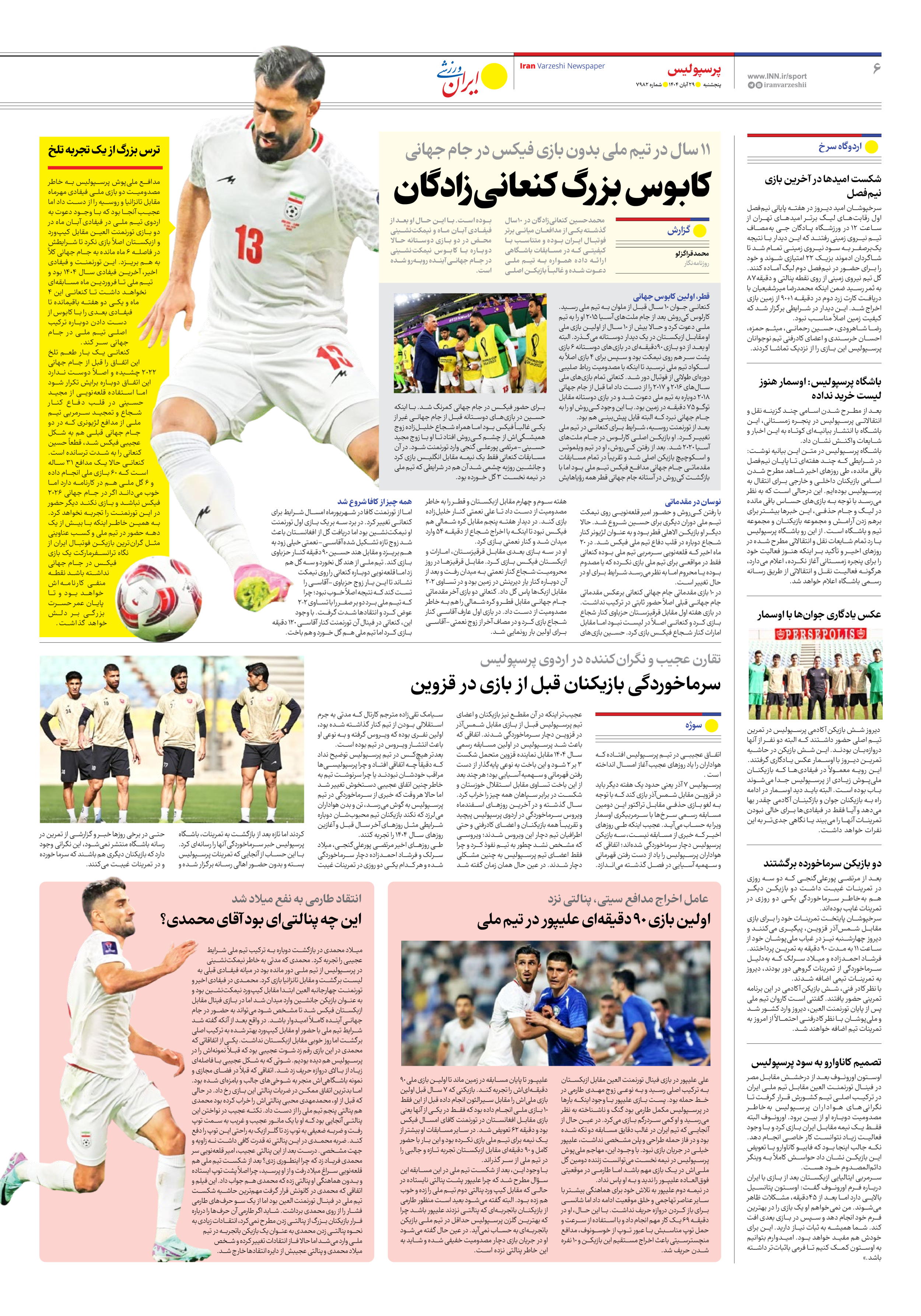 روزنامه ایران ورزشی - شماره هفت هزار و نهصد و هشتاد و دو - ۲۹ آبان ۱۴۰۴ - صفحه ۶
