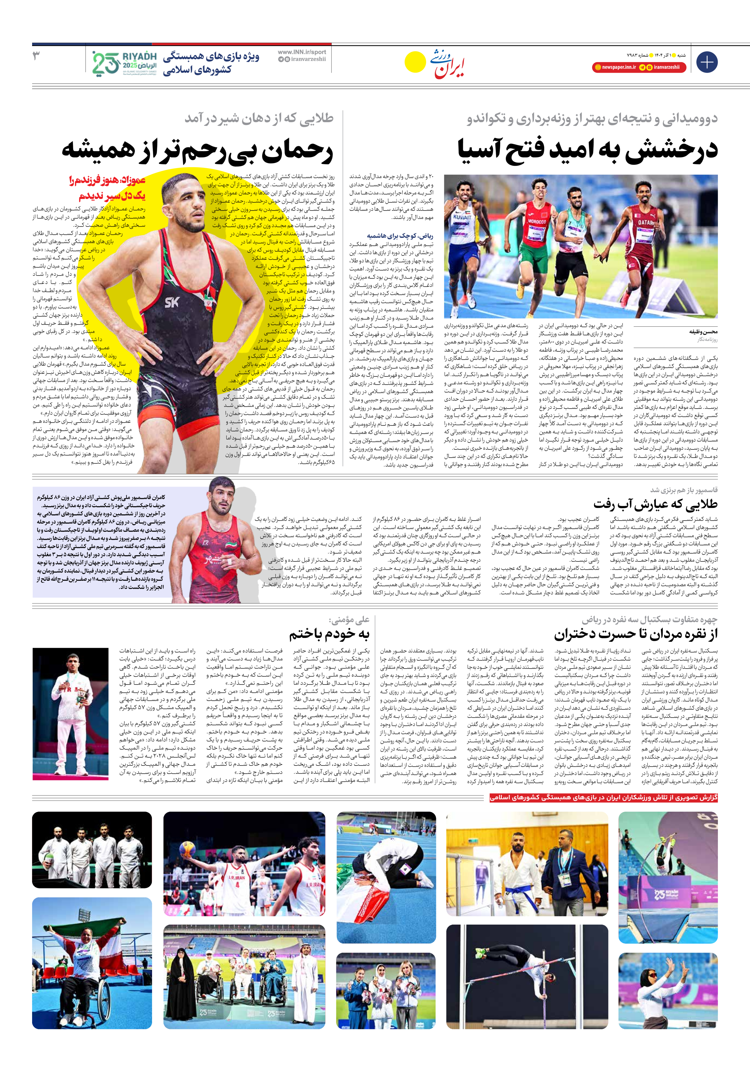 روزنامه ایران ورزشی - شماره هفت هزار و نهصد و هشتاد و سه - ۰۱ آذر ۱۴۰۴ - صفحه ۳