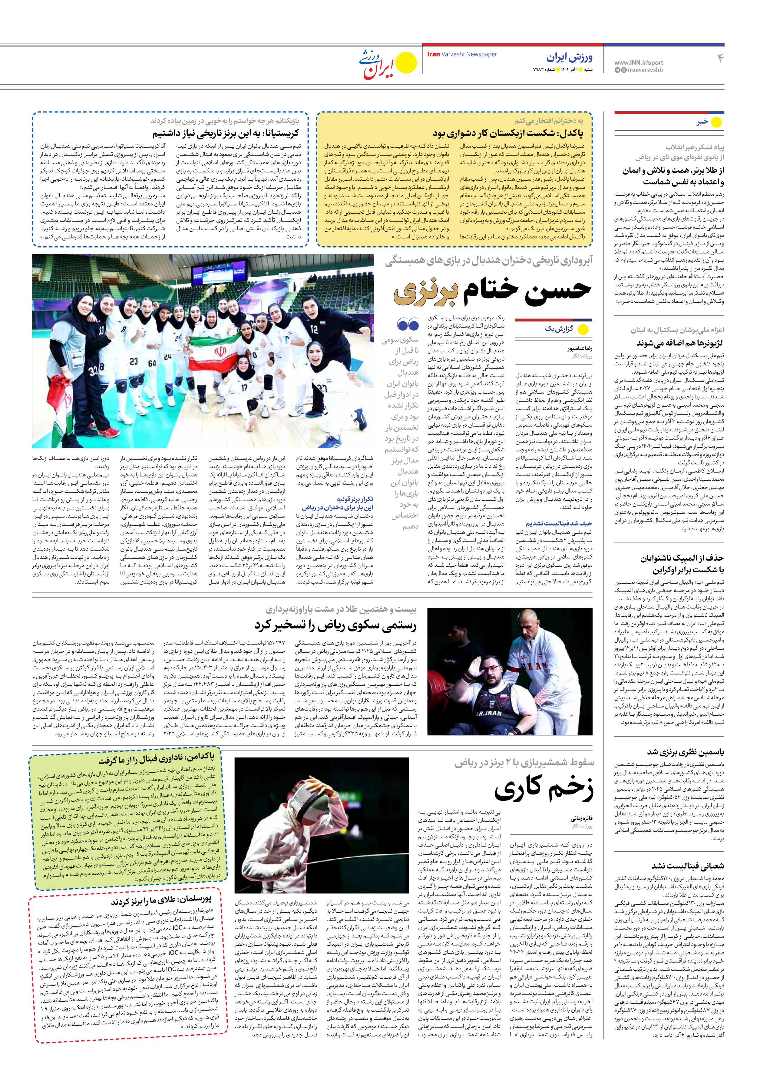 روزنامه ایران ورزشی - شماره هفت هزار و نهصد و هشتاد و سه - ۰۱ آذر ۱۴۰۴ - صفحه ۴