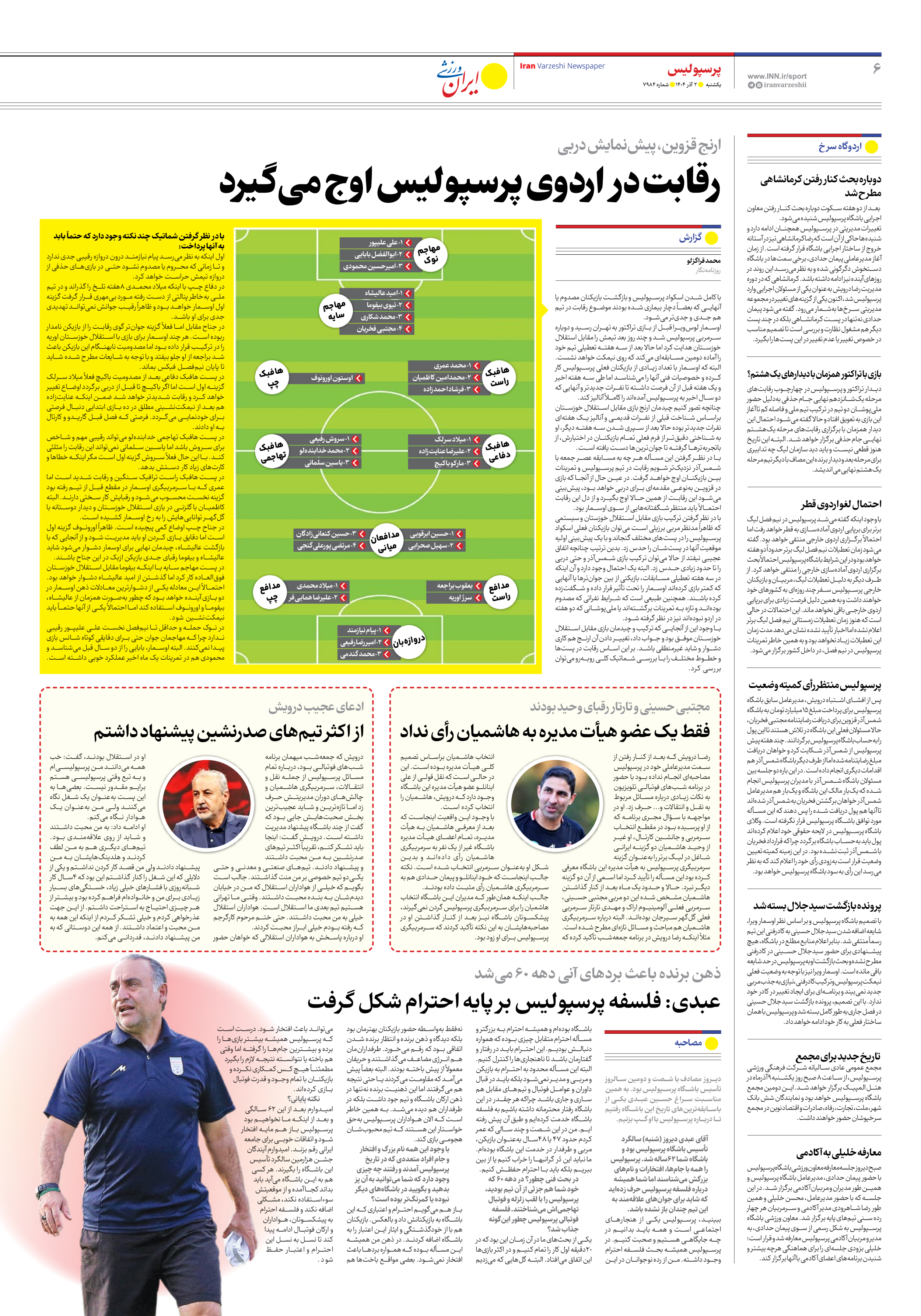 روزنامه ایران ورزشی - شماره هفت هزار و نهصد و هشتاد و چهار - ۰۲ آذر ۱۴۰۴ - صفحه ۶