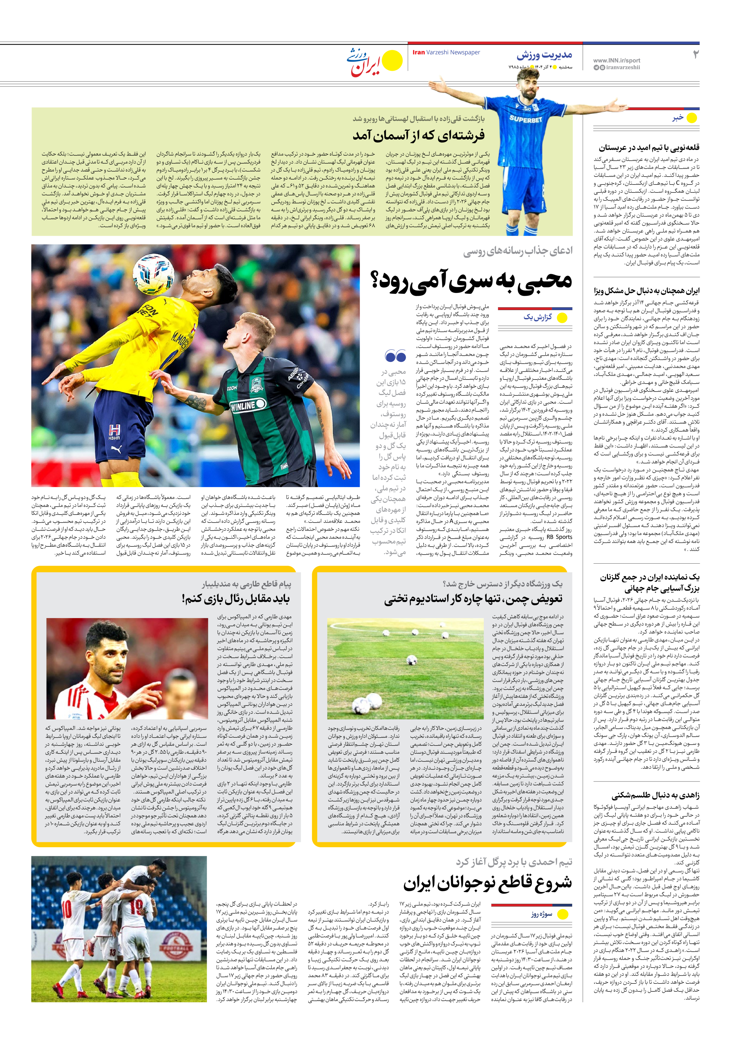 روزنامه ایران ورزشی - شماره هفت هزار و نهصد و هشتاد و پنج - ۰۴ آذر ۱۴۰۴ - صفحه ۲