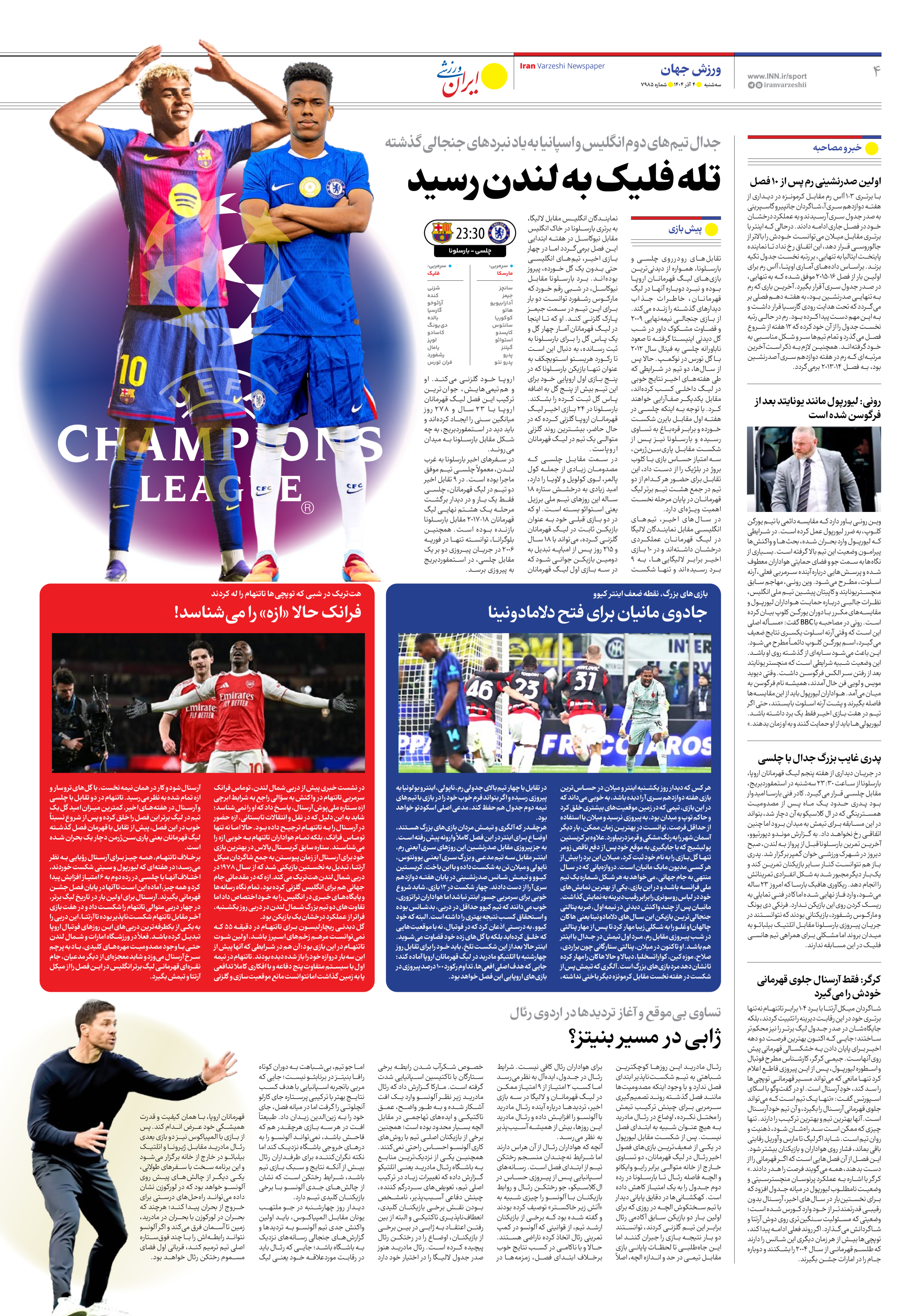 روزنامه ایران ورزشی - شماره هفت هزار و نهصد و هشتاد و پنج - ۰۴ آذر ۱۴۰۴ - صفحه ۴