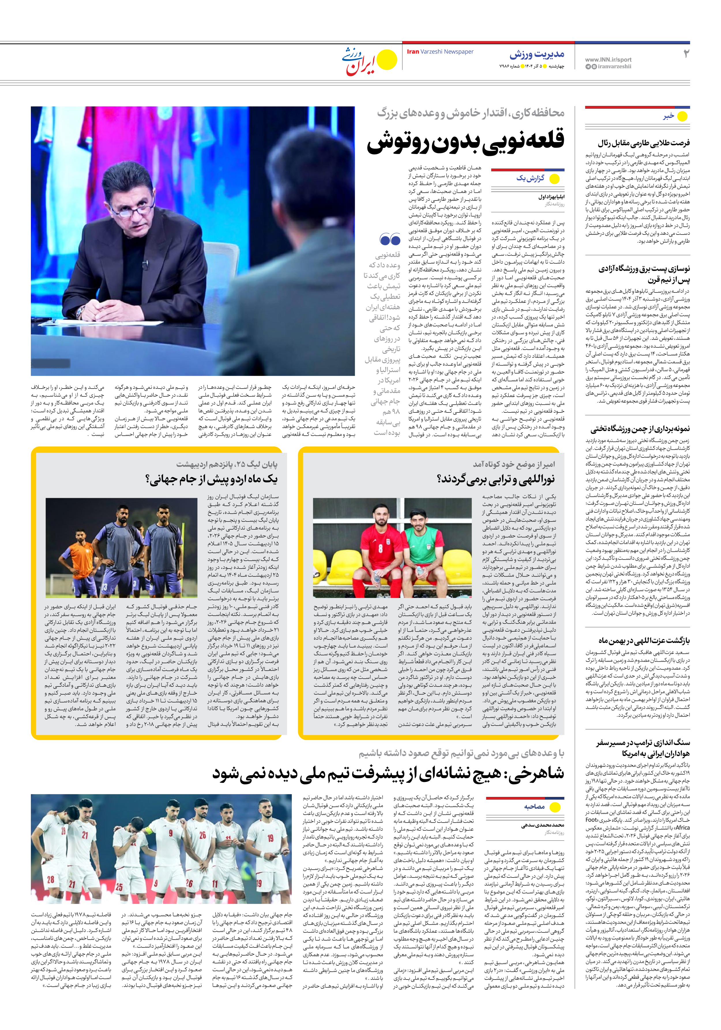روزنامه ایران ورزشی - شماره هفت هزار و نهصد و هشتاد و شش - ۰۵ آذر ۱۴۰۴ - صفحه ۲