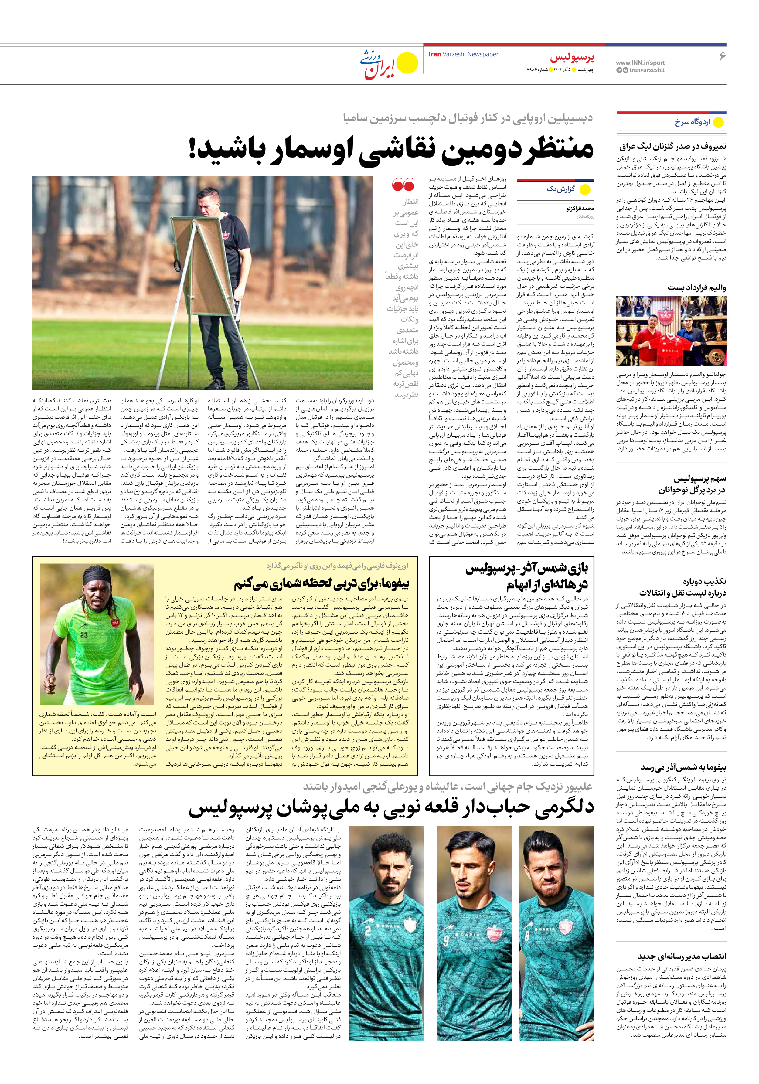 روزنامه ایران ورزشی - شماره هفت هزار و نهصد و هشتاد و شش - ۰۵ آذر ۱۴۰۴ - صفحه ۶