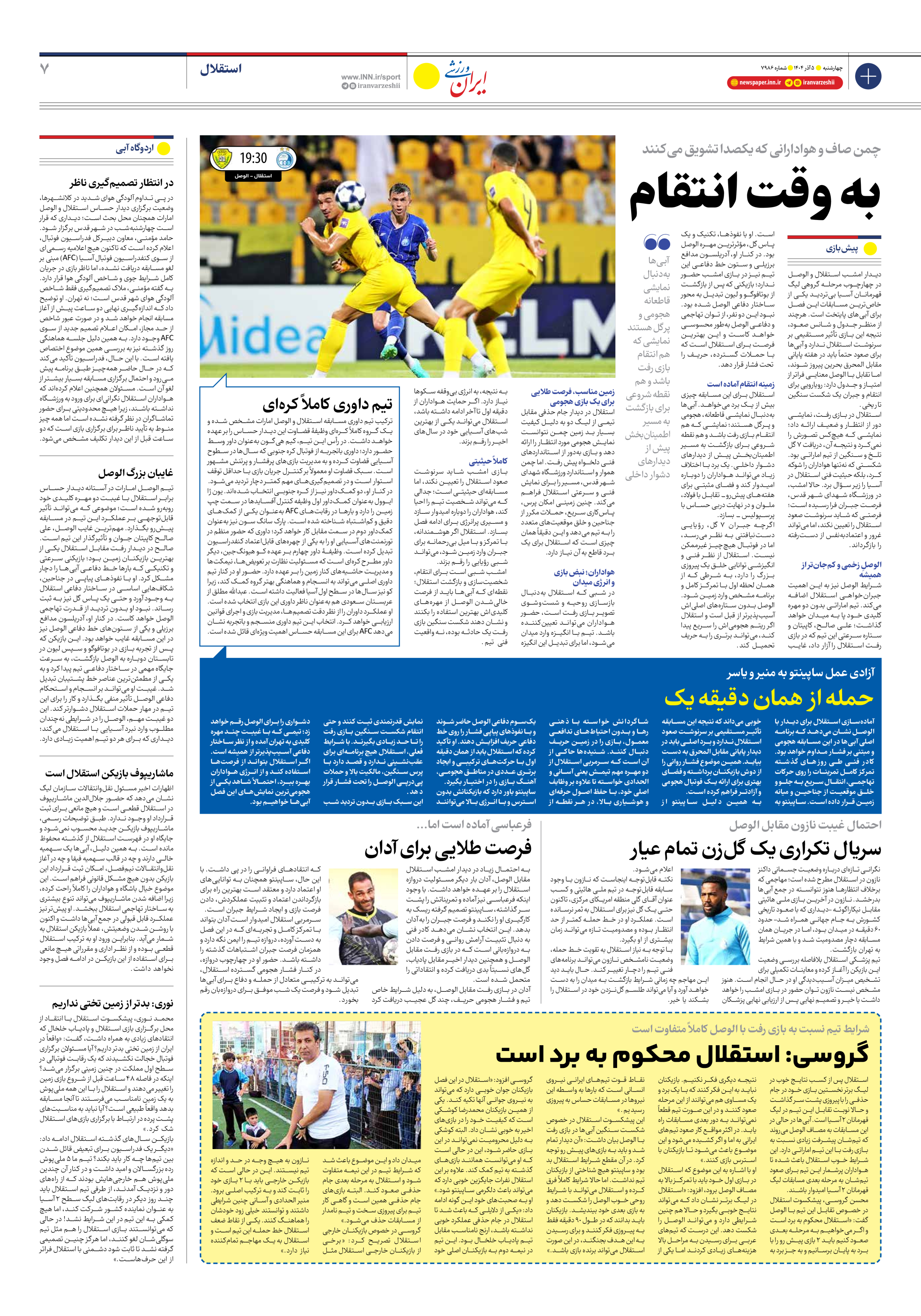 روزنامه ایران ورزشی - شماره هفت هزار و نهصد و هشتاد و شش - ۰۵ آذر ۱۴۰۴ - صفحه ۷