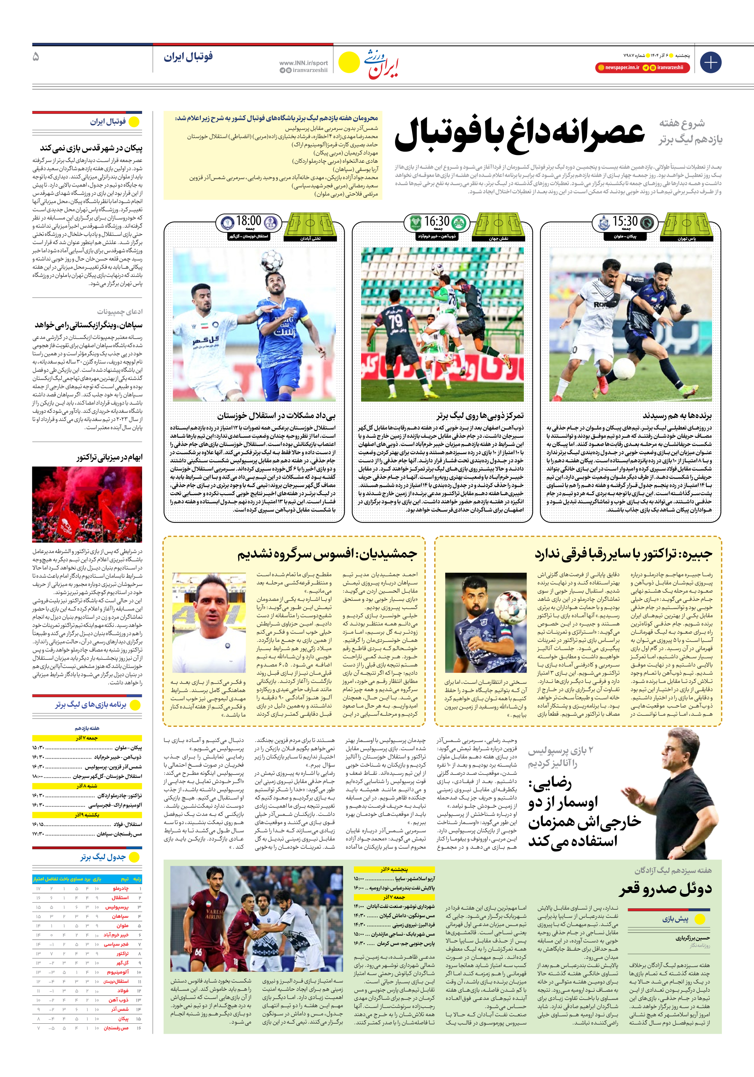 روزنامه ایران ورزشی - شماره هفت هزار و نهصد و هشتاد و هفت - ۰۶ آذر ۱۴۰۴ - صفحه ۵