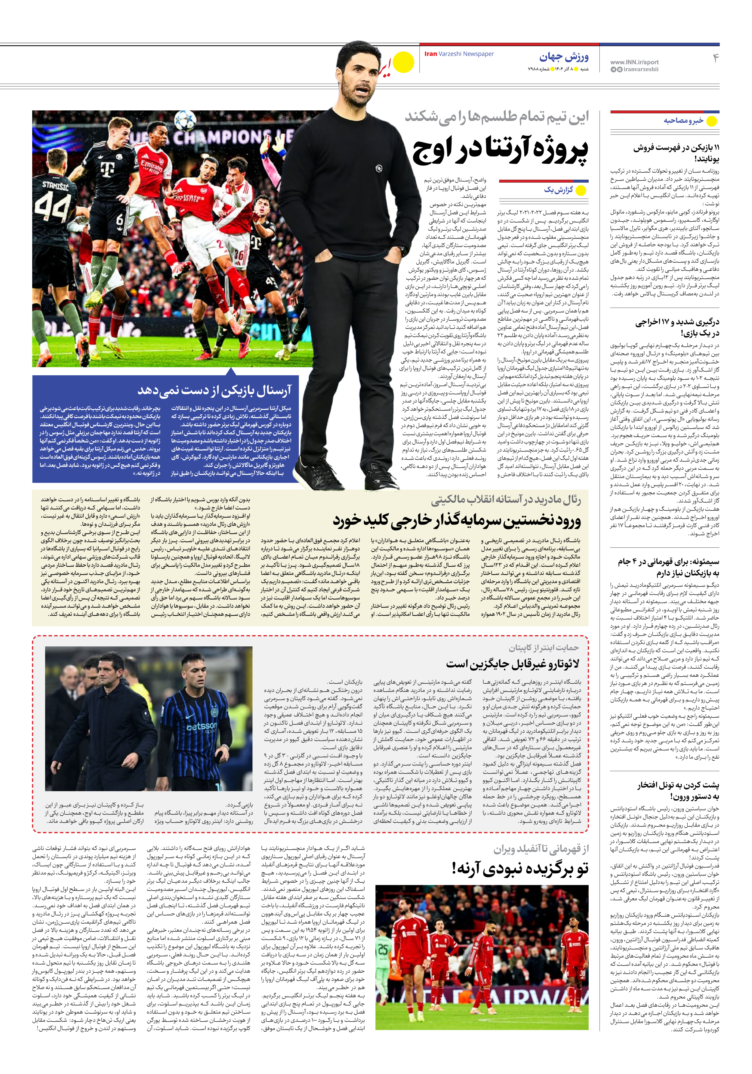 روزنامه ایران ورزشی - شماره هفت هزار و نهصد و هشتاد و هشت - ۰۸ آذر ۱۴۰۴ - صفحه ۴
