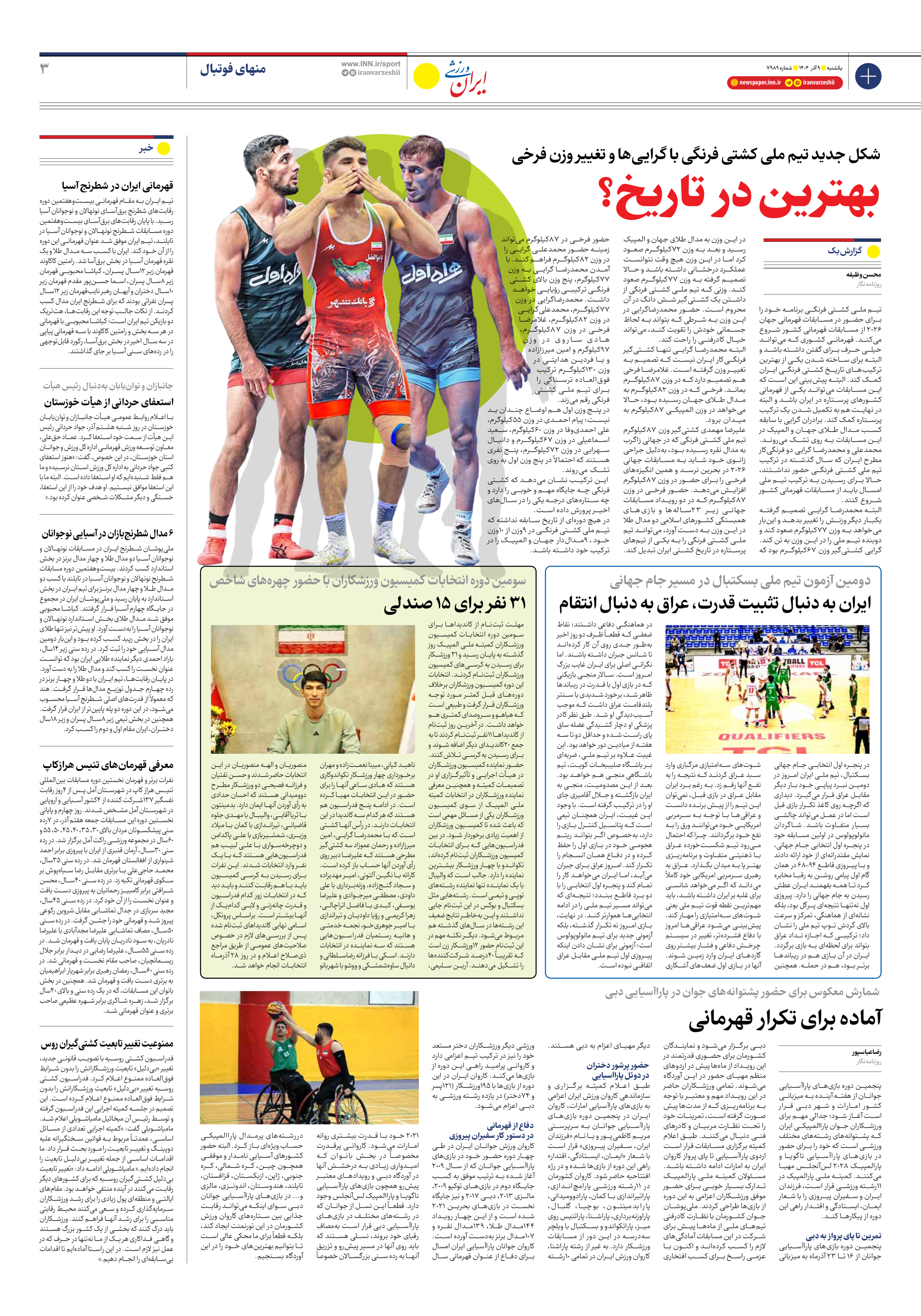 روزنامه ایران ورزشی - شماره هفت هزار و نهصد و هشتاد و نه - ۰۹ آذر ۱۴۰۴ - صفحه ۳