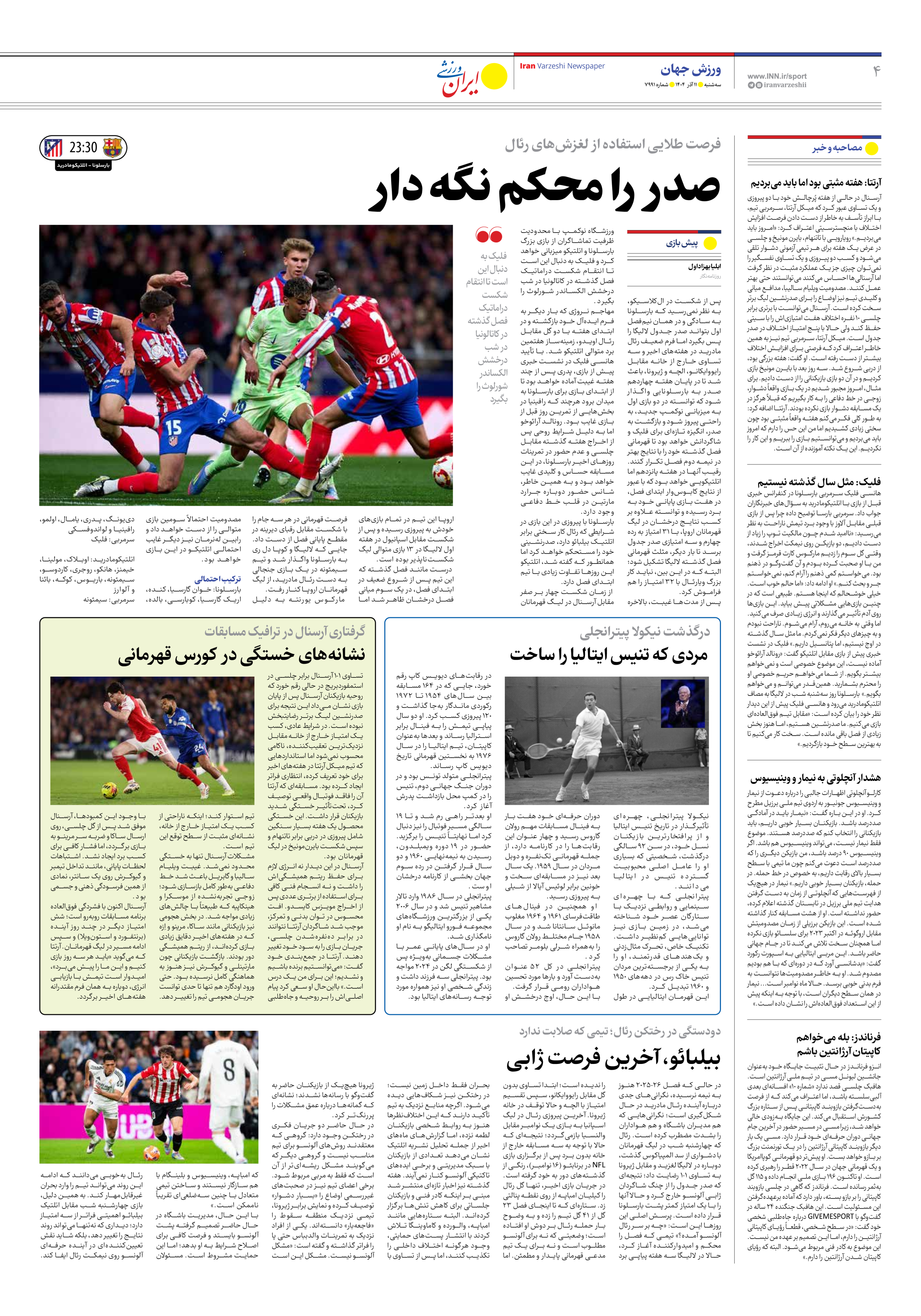 روزنامه ایران ورزشی - شماره هفت هزار و نهصد و نود و یک - ۱۱ آذر ۱۴۰۴ - صفحه ۴