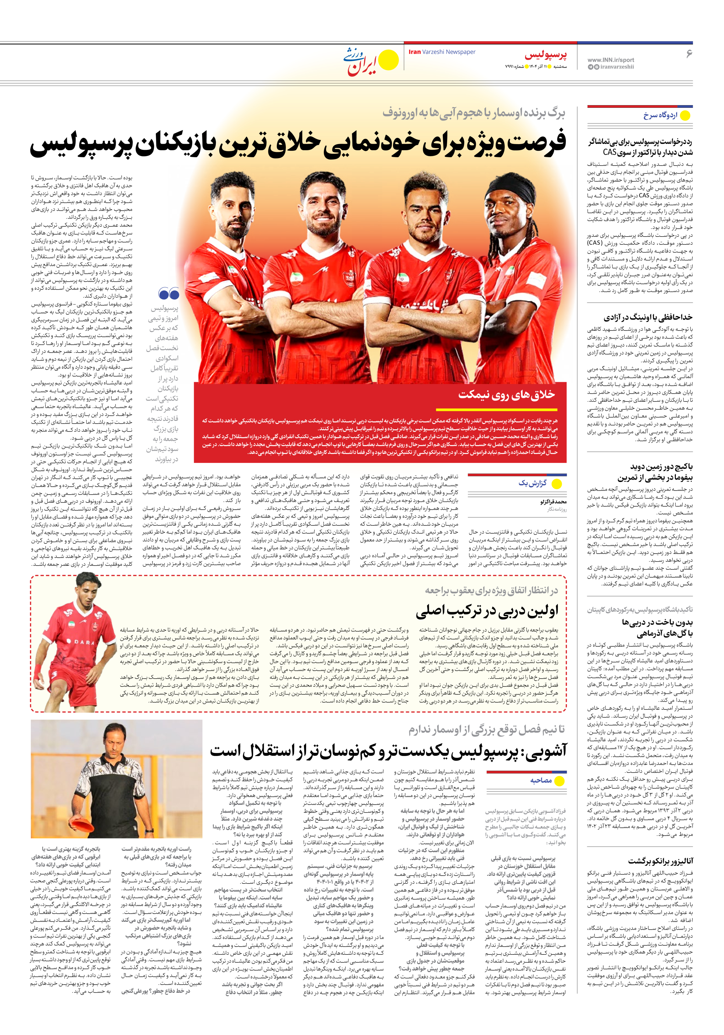 روزنامه ایران ورزشی - شماره هفت هزار و نهصد و نود و یک - ۱۱ آذر ۱۴۰۴ - صفحه ۶