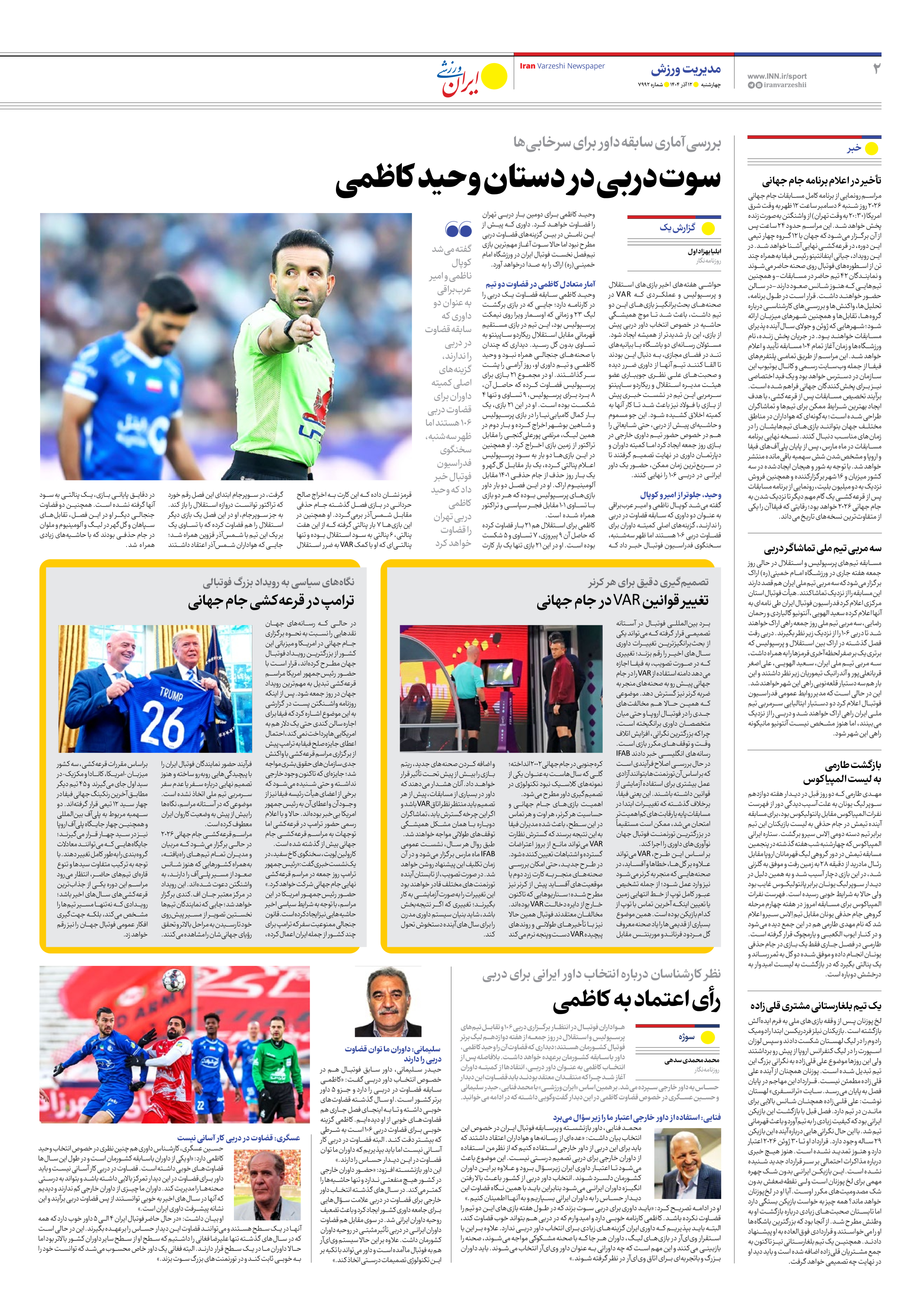 روزنامه ایران ورزشی - شماره هفت هزار و نهصد و نود و دو - ۱۲ آذر ۱۴۰۴ - صفحه ۲